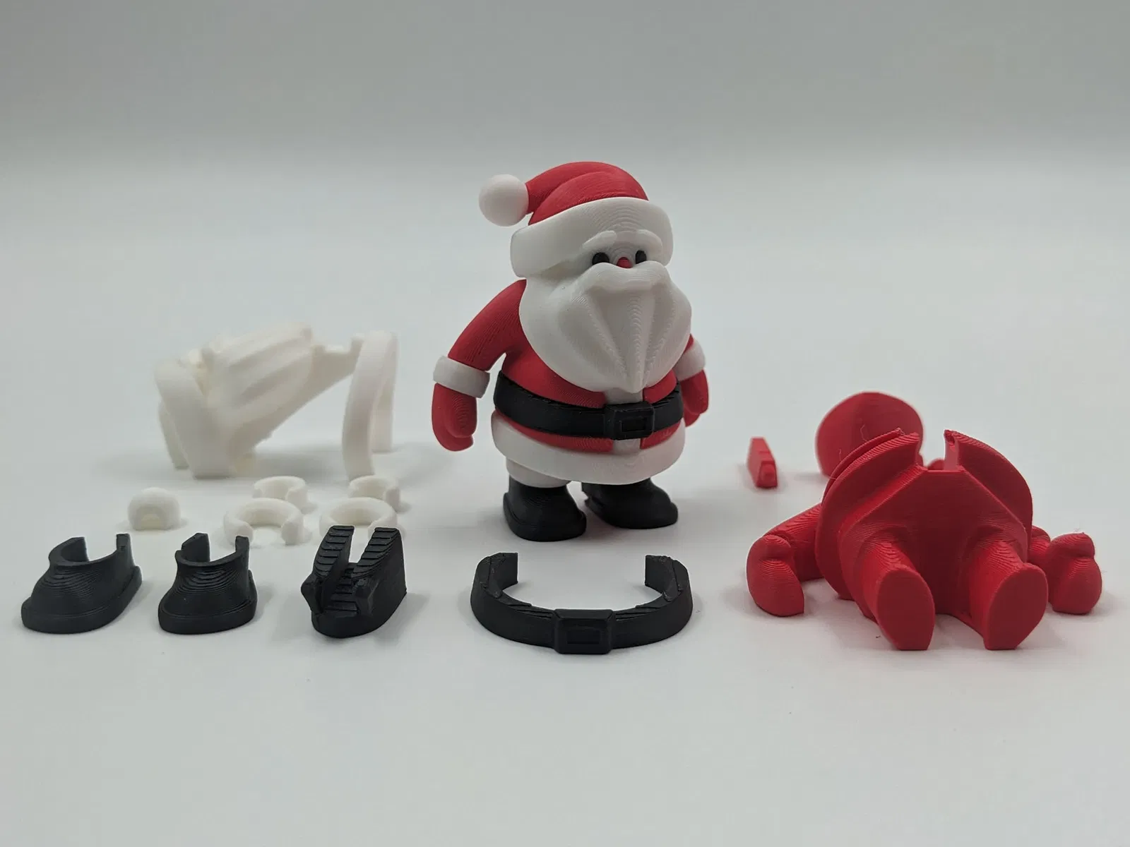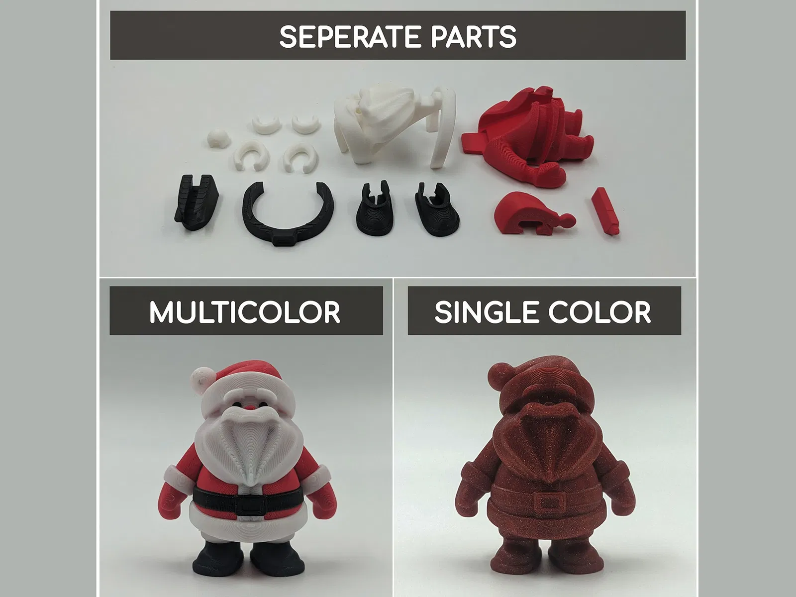 In ông già Noel thành các bộ phận riêng lẻ rồi ráp lại với nhau. Hoặc in một lần trên máy in đa sắc màu.