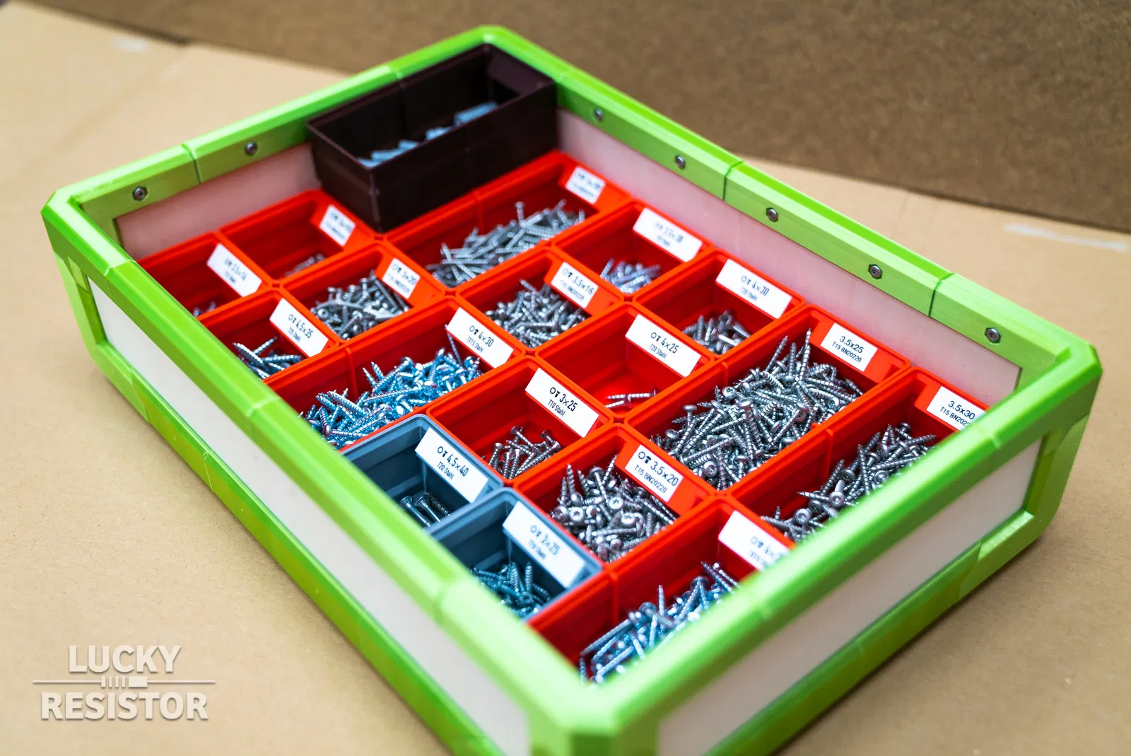 Thiết kế này không dành cho tất cả mọi người đâu nha. 😅 Một cái hộp vừa trang trí, vừa có thể ghép lại thành nhiều kiểu, nhưng mà nó cũng bự chảng luôn đó. Làm từ các bộ phận in 3D, các tấm ván ép dày 5mm và rất nhiều vít gỗ loại 3x10mm.