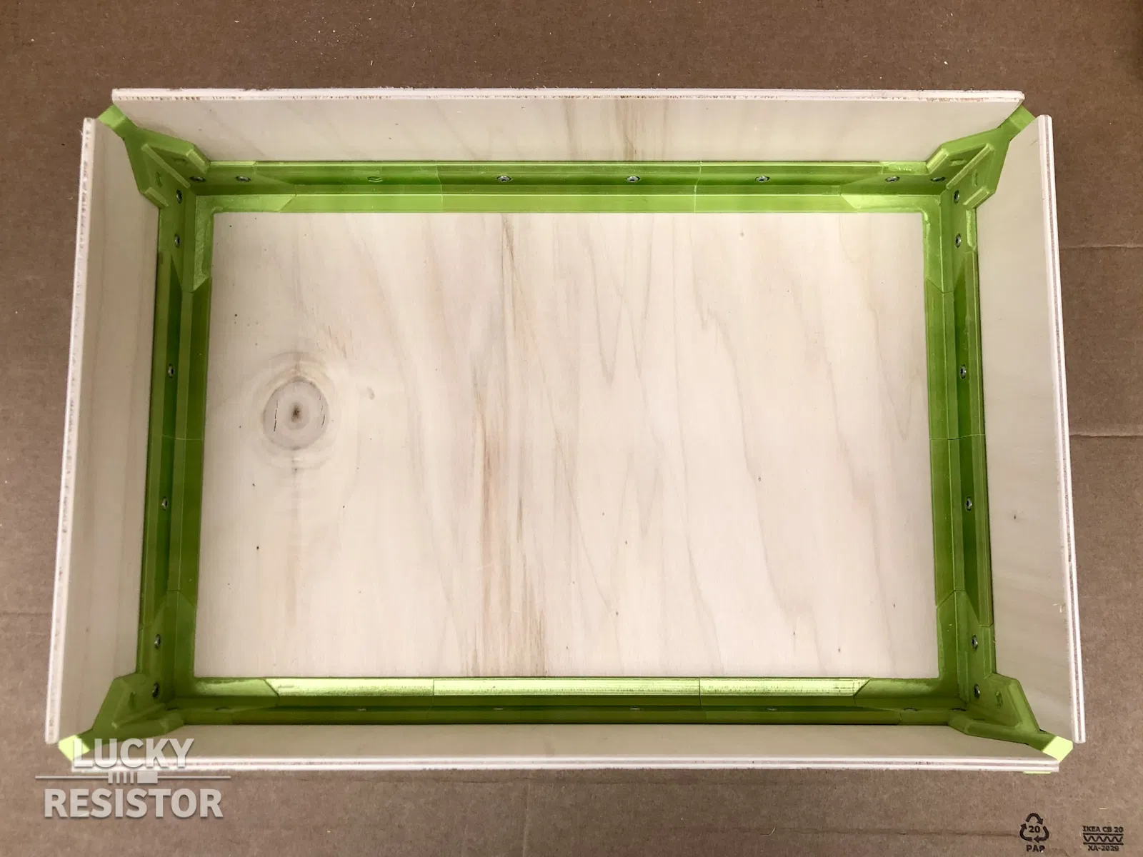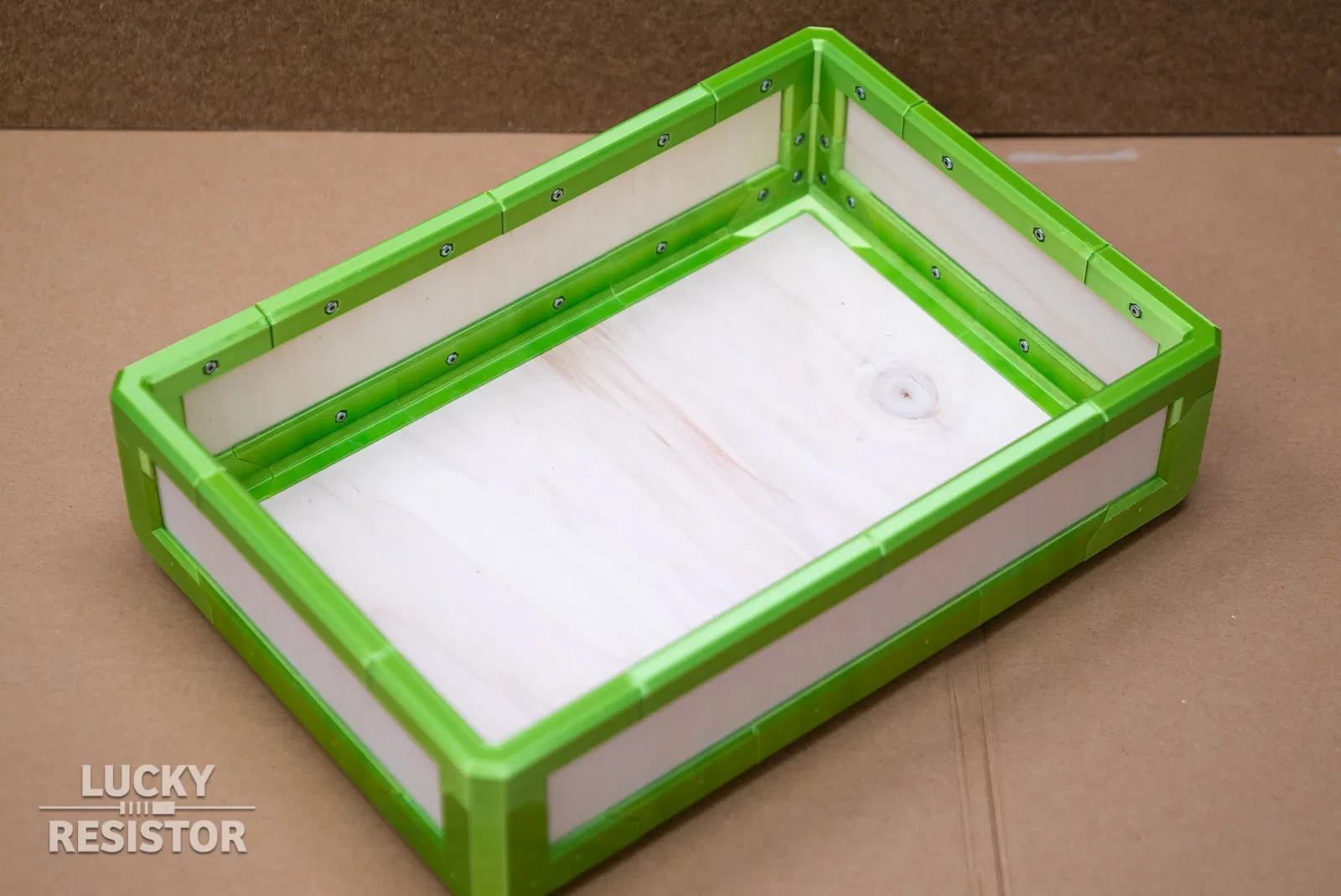 Một chiếc hộp trang trí, có thể lắp ghép thành nhiều kiểu, nhưng kích thước thì khá là bự. Được làm từ các bộ phận in 3D, ván ép dày 5mm và nhiều vít gỗ. Bạn có thể tùy chỉnh kích thước hộp tùy ý theo ý muốn.