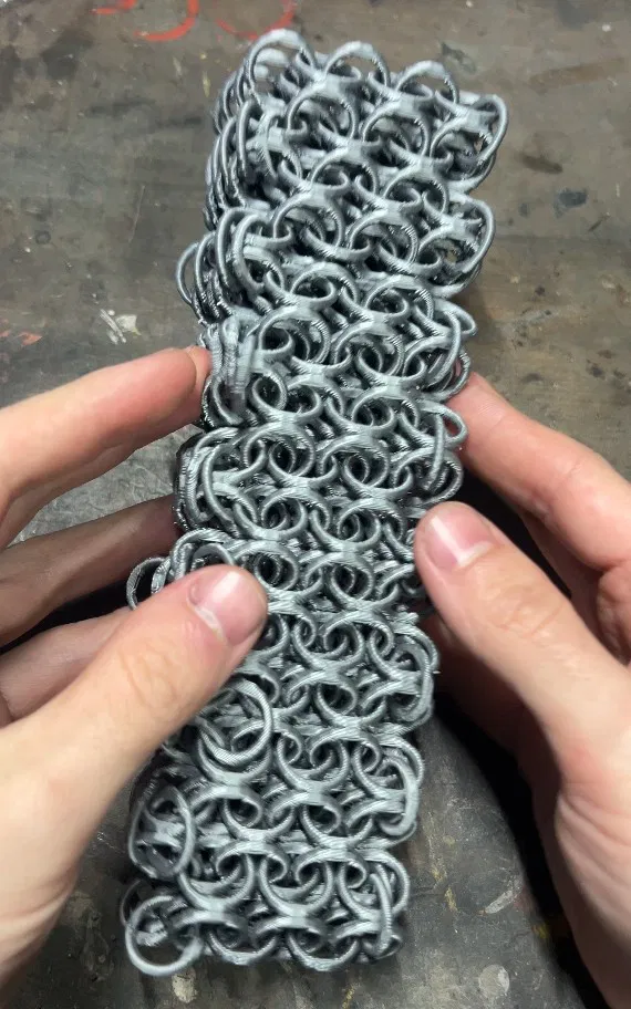Được làm từ một khối 65x52x198 mm gồm các vòng lồng vào nhau được xếp cẩn thận và hỗ trợ lẫn nhau, bản in 3D này có thể mở rộng thành một tấm áo giáp lưới dài gần 1.5 mét và rộng 6 cm. Nó được in trên máy Prusa Core One. Xem nó hoạt động nè: https://www.instagram.com/reel/DN-ohuujVE-/?igsh=NjJwMWs5ZG1tdW1l