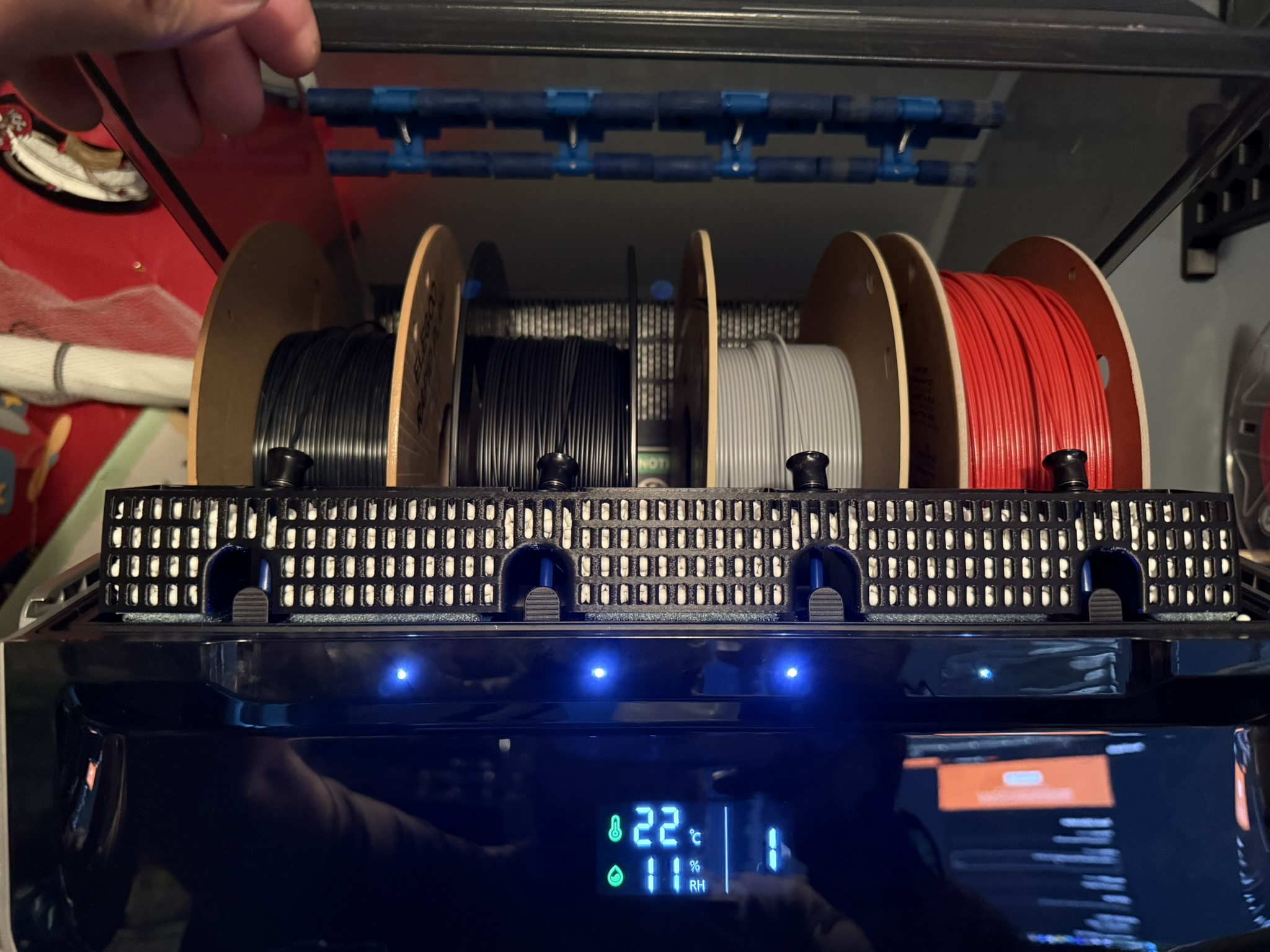 - Có thể nạp và rút filament ra mà không cần tháo cái chỗ để hạt hút ẩm này. Điều này có nghĩa là phải thao tác được cái cần nhả cho từng khe.
