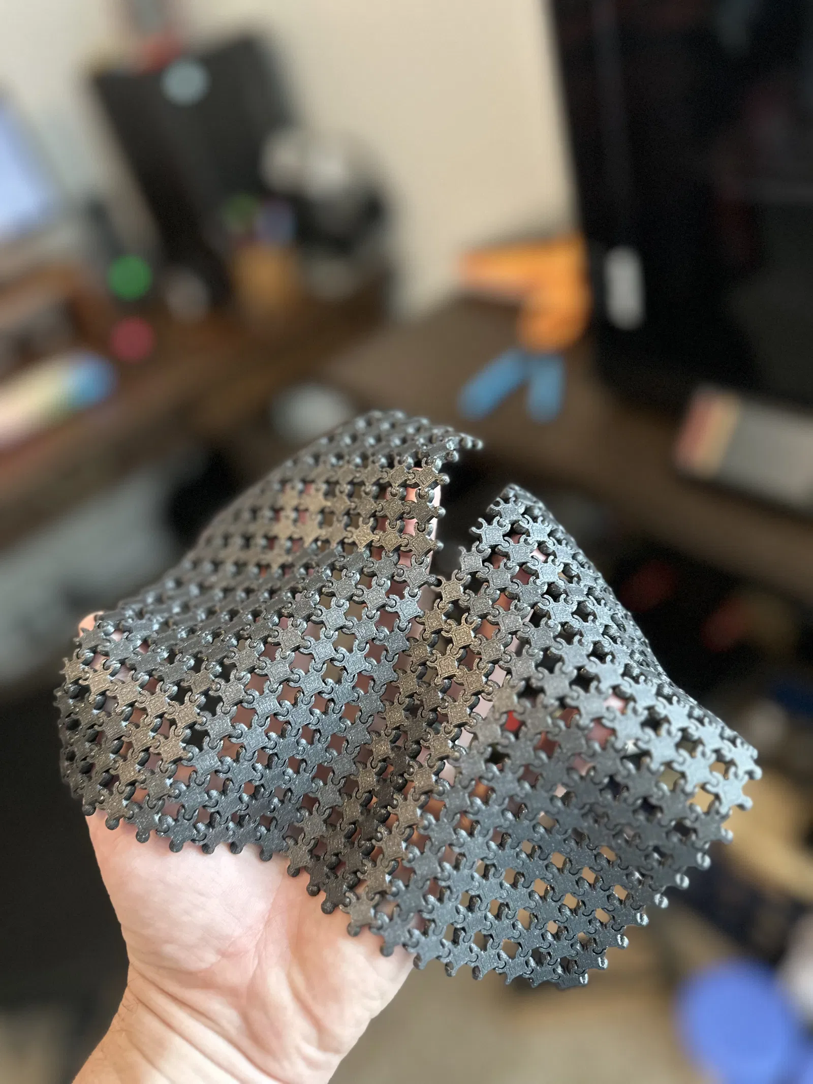 Tạo ra "vải" 3D có thể tháo rời và ghép lại bằng các khớp bi và ổ cắm. Hoàn hảo cho các dự án sáng tạo, dễ dàng in với PLA hoặc PETG. Phiên bản đầu tiên với kế hoạch cải tiến trong tương lai.