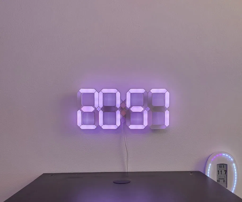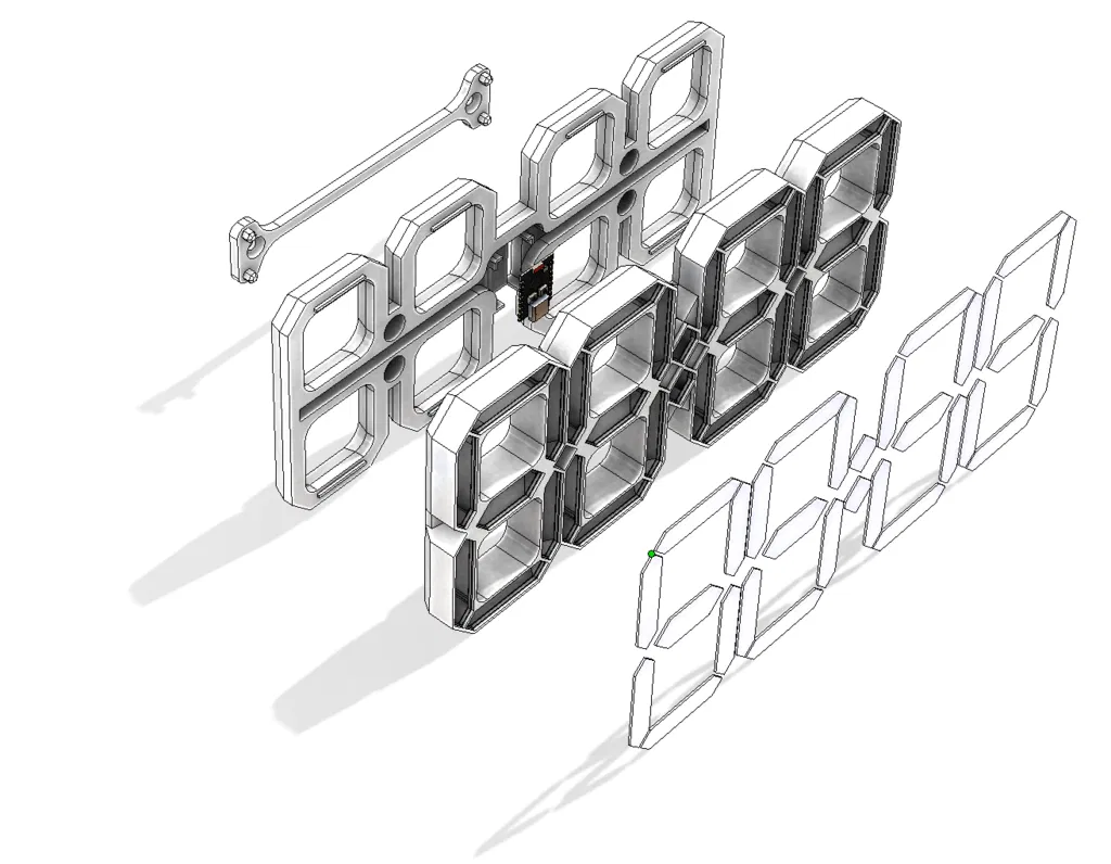 Một chiếc đồng hồ kỹ thuật số đơn giản được thiết kế với dải đèn LED WS2812B, hiển thị 24 giờ. Mỗi chữ số sử dụng 15 bóng đèn LED, với dây nối đơn giản và vỏ được in 3D. Có thể tùy chỉnh màu sắc, độ sáng và thời gian chuyển đổi giờ mùa đông/hè. Bao gồm cả tệp SolidWorks và Step.