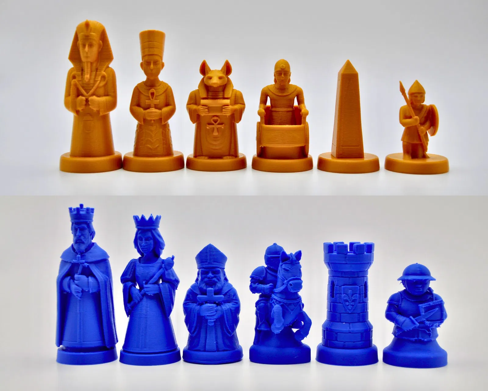 Trận chiến vượt thời gian giữa Người Ai Cập cổ đại và Người Châu Âu cổ đại! Bộ cờ vua này bao gồm Vua, Hậu, Tượng, Mã, Xe và Tốt với các chiều cao khác nhau, hoàn hảo cho người yêu cờ vua. Có giấy phép thương mại và bộ độc quyền qua Patreon.
