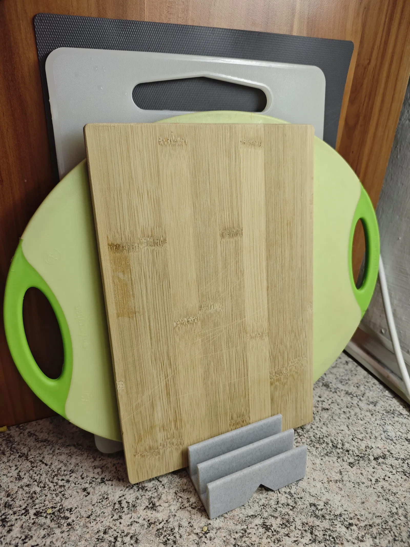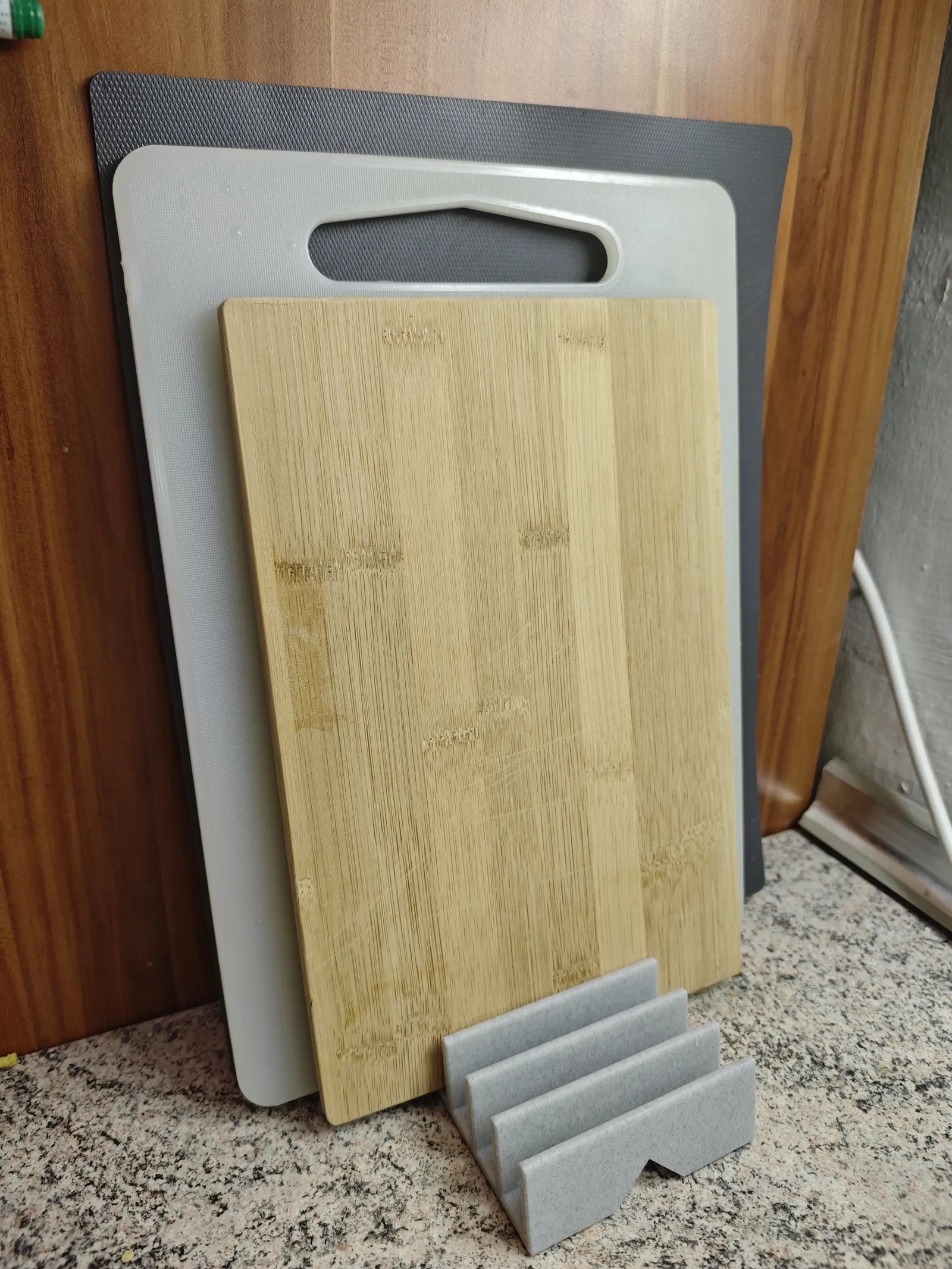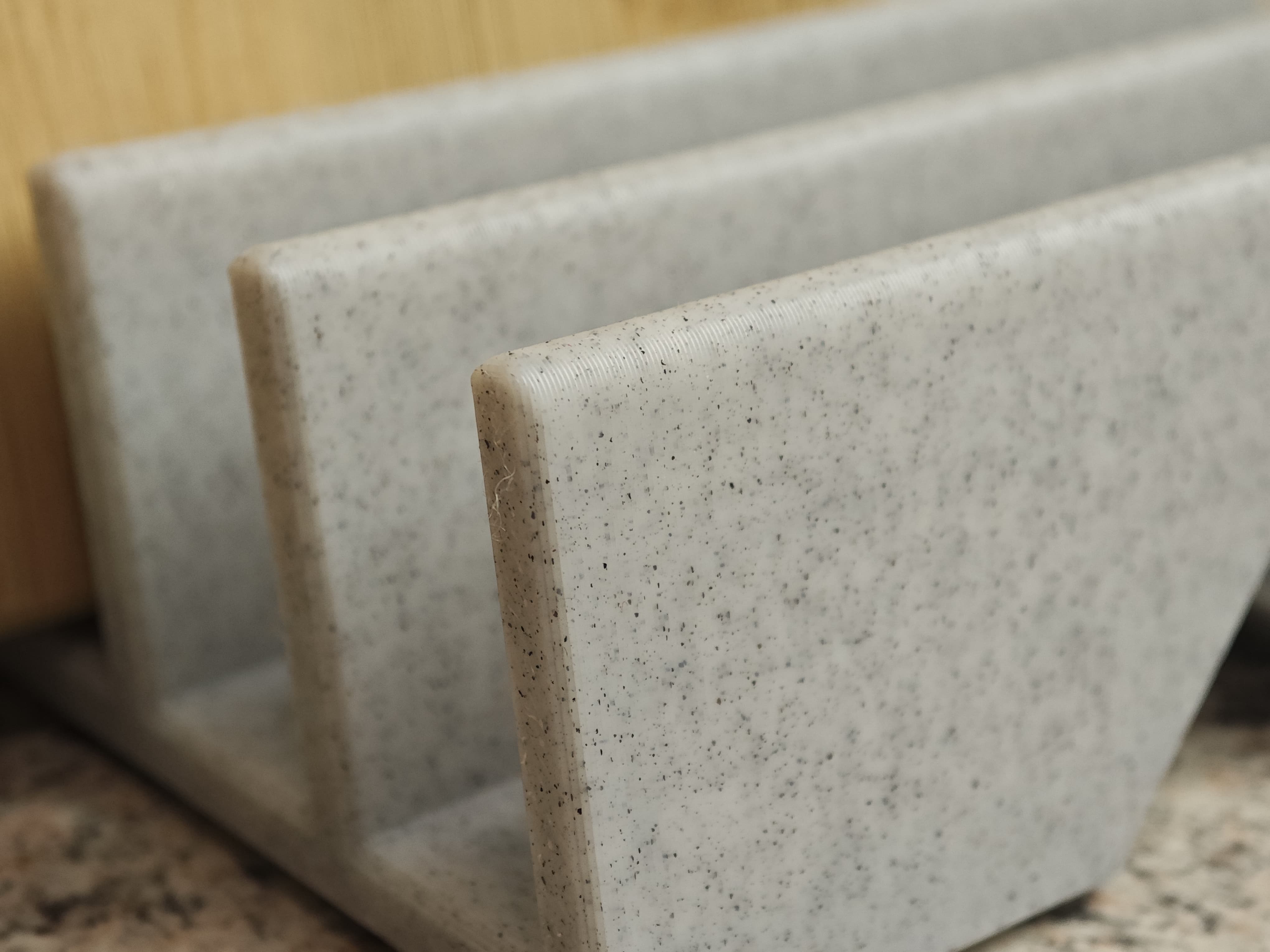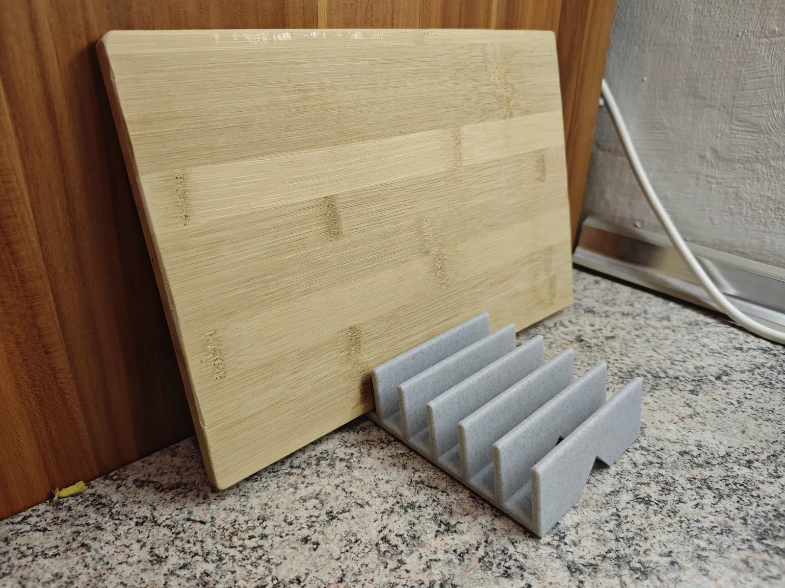 Giá đỡ thớt chức năng, giữ tối đa 6 tấm thớt đứng thẳng, khô ráo. Có kênh thoát nước, chống trượt, dễ in. Là một phần của thử thách 'in mỗi ngày' để giữ kỹ năng mô hình 3D sắc bén.