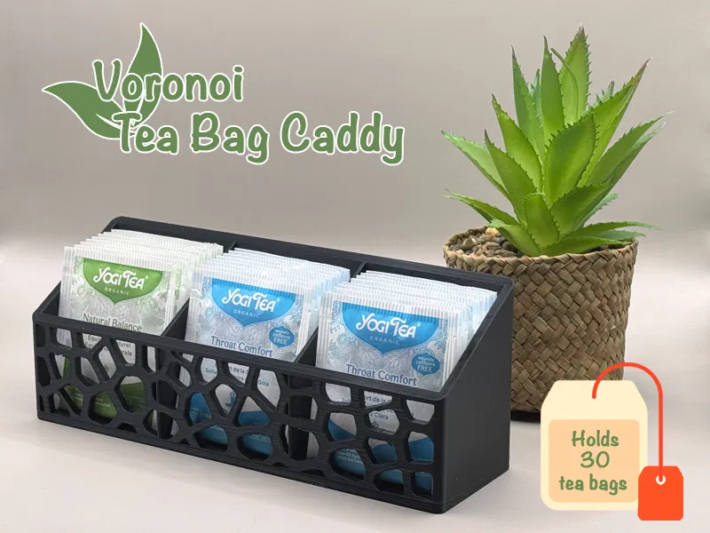 Giới thiệu Kệ đựng túi trà Voronoi thiết kế cho in 3D. Phụ kiện này vừa trang nhã, vừa tiện dụng để sắp xếp túi trà yêu thích, với hoa văn Voronoi độc đáo. In dễ dàng và không cần hỗ trợ.