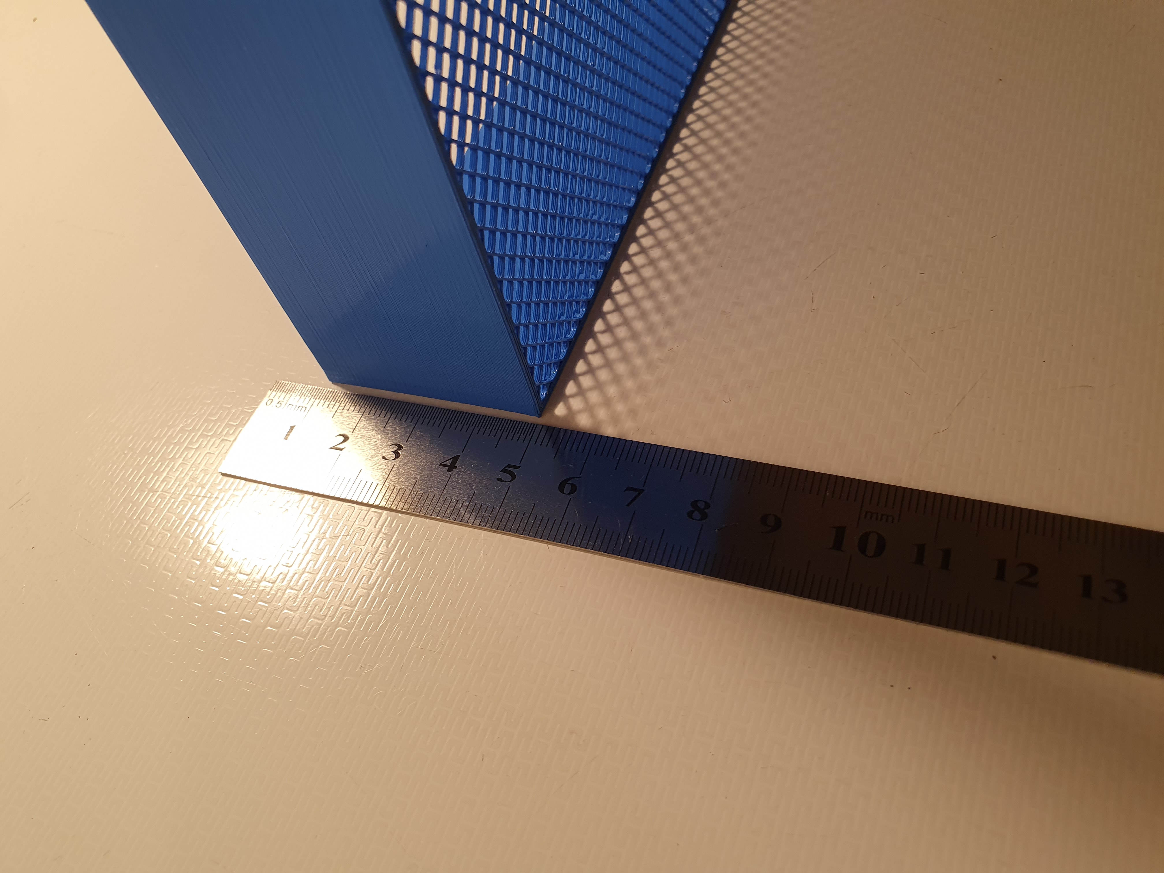 Như một tác dụng phụ thú vị, rây có thể được scale lên hoặc xuống, và kích thước lưới vẫn sẽ được xác định bởi tỷ lệ infill. Độ dày thành và kích thước lưới được xác định bởi các tham số của slicer.