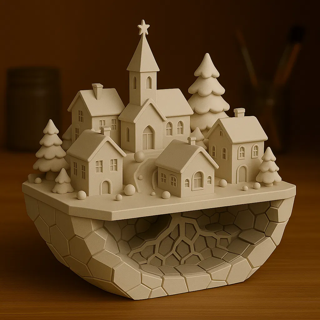 Một cảnh Giáng Sinh hình học độc đáo, mang đậm phong cách tối giản và hiện đại. Thích hợp làm vật trang trí nhà cửa, quà tặng ý nghĩa trong mùa lễ hội. Mô hình này được thiết kế với các khối đa giác tinh tế, tạo nên một không gian làng quê mùa đông ấm cúng và đầy tính nghệ thuật.