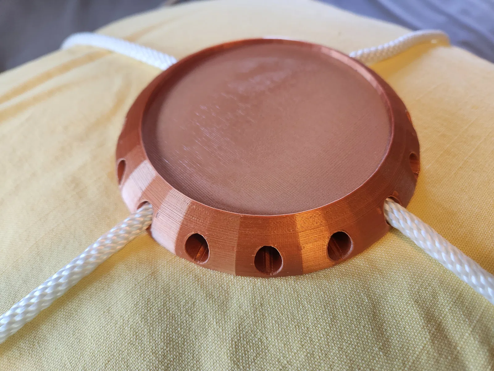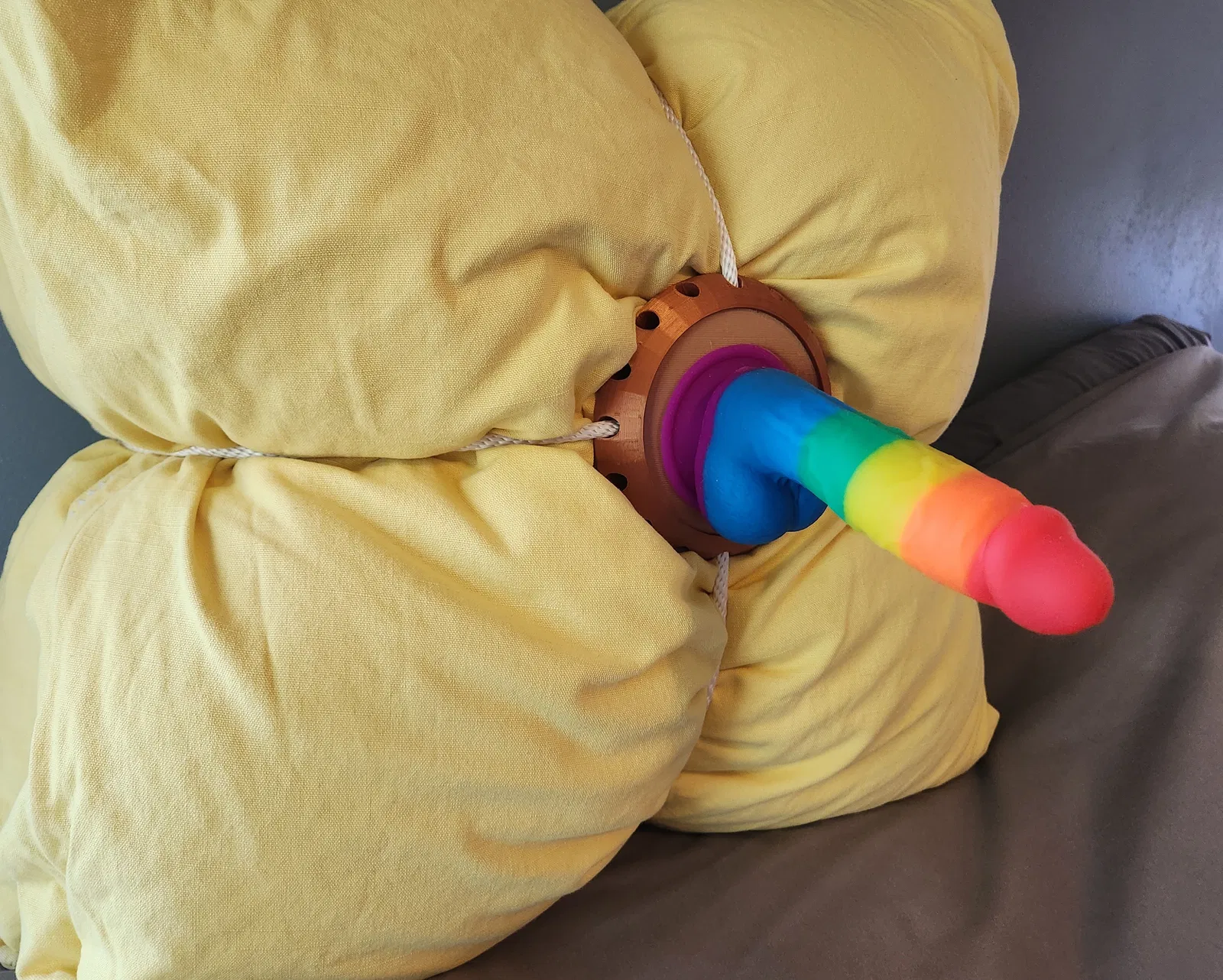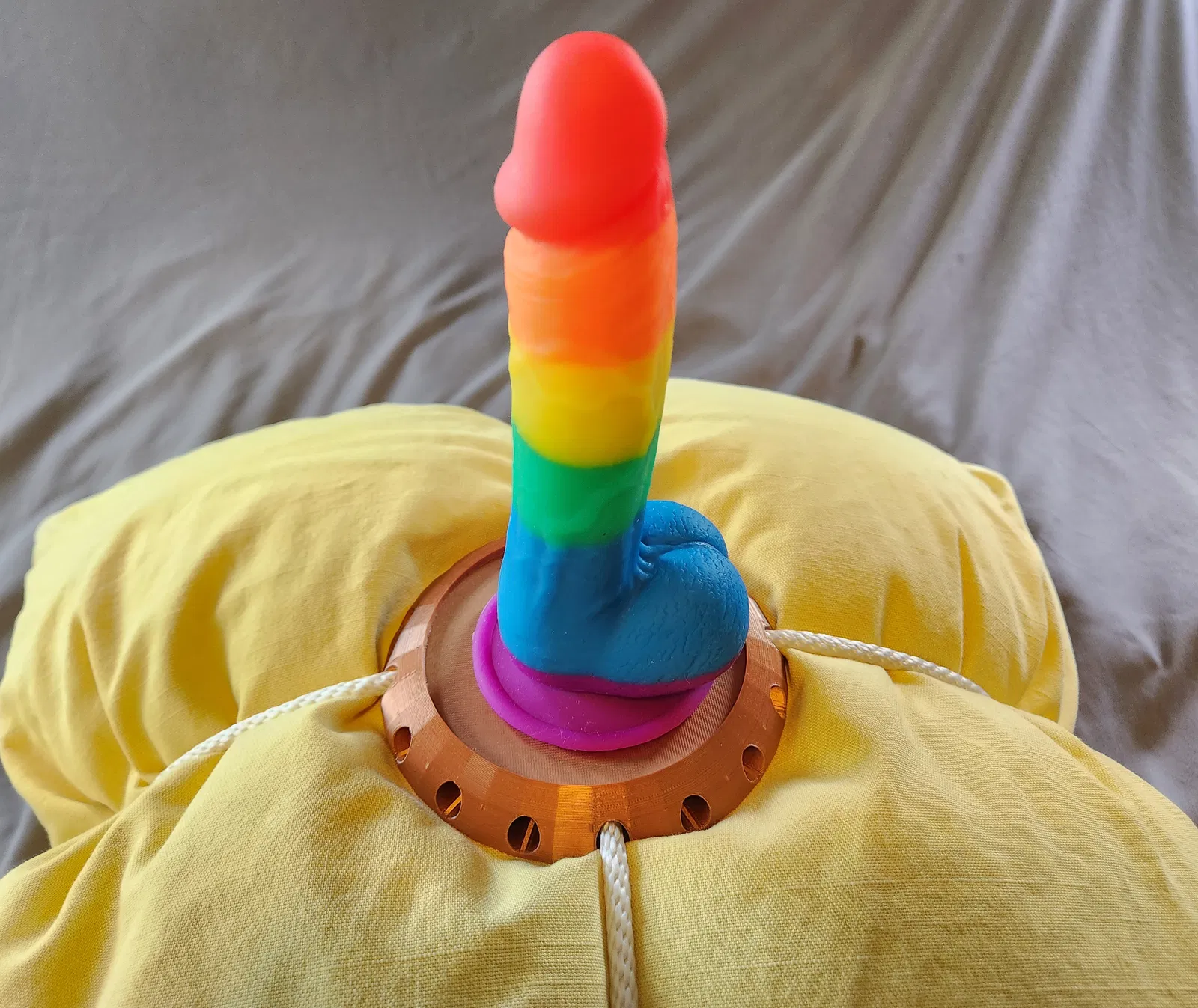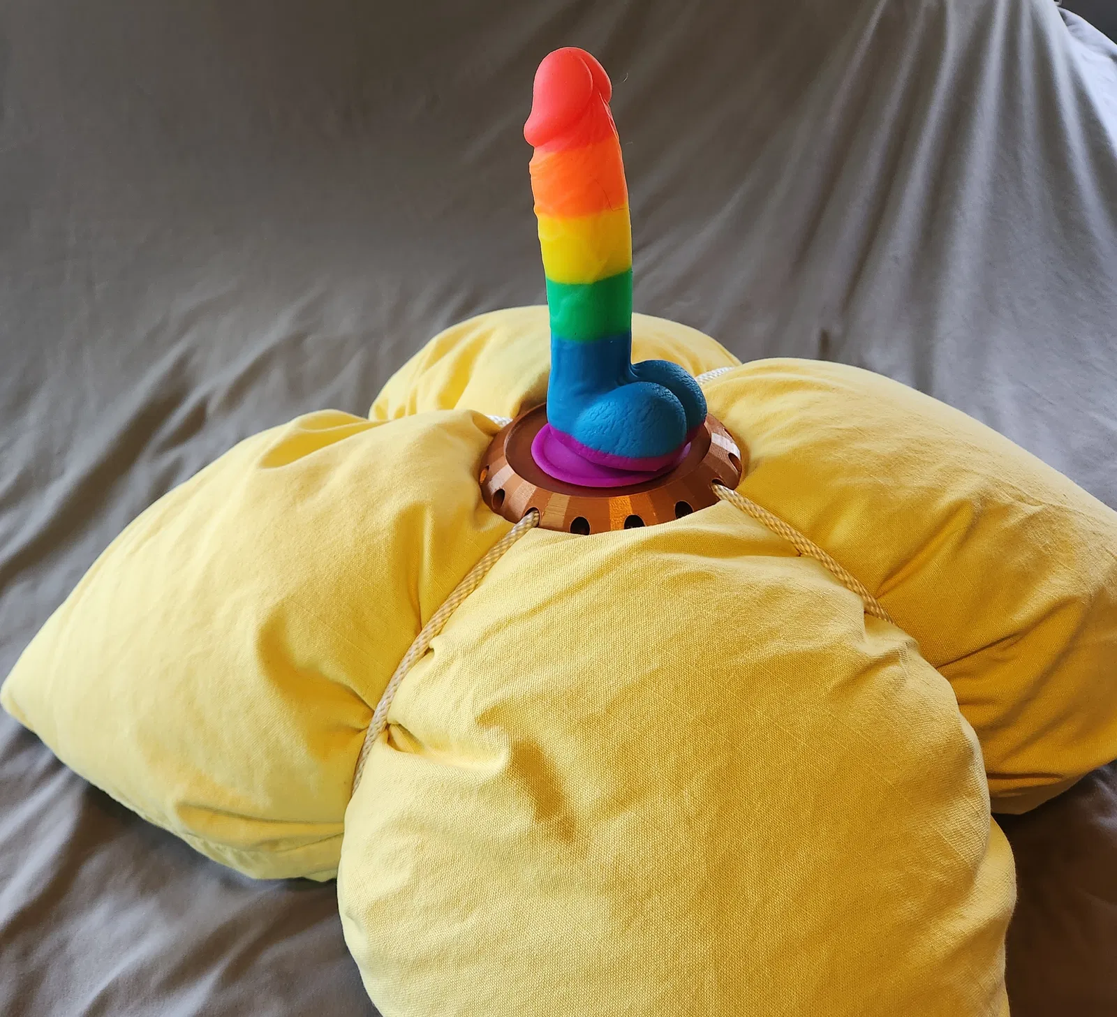 Một bề mặt phẳng, tròn đường kính 10cm, có lỗ để buộc vào gối hoặc ghế, giúp gắn chắc chắn đồ chơi tình dục có cốc hút. Cần chà nhám và sơn polyurethane để có bề mặt tốt nhất.