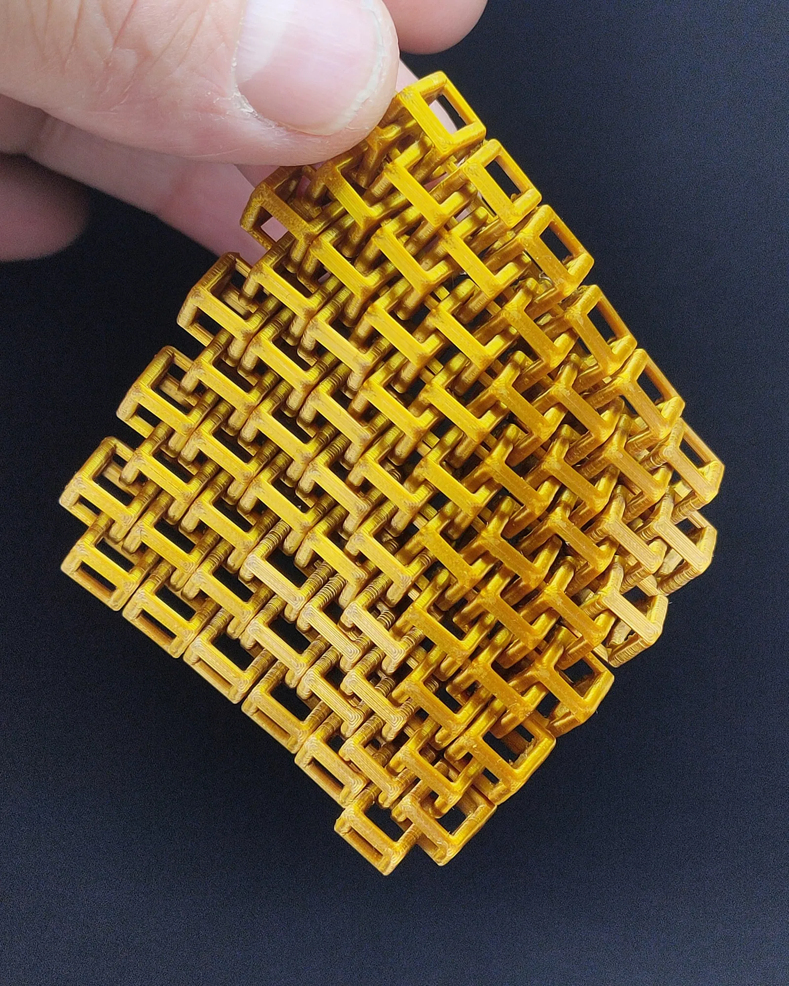 Mô hình Khối Vải Lập Phương (Cubic Fabric) được tạo ra bằng cách độc đáo, đặt các khối rỗng và nối chúng lại. Có 5 kích cỡ được chuẩn bị, phù hợp với các loại đầu phun khác nhau (0.4mm hoặc 0.25mm). Mô hình này thử thách khả năng in cầu nối và độ bám dính trên mâm in. Khuyến khích làm sạch mâm in kỹ lưỡng trước khi in.