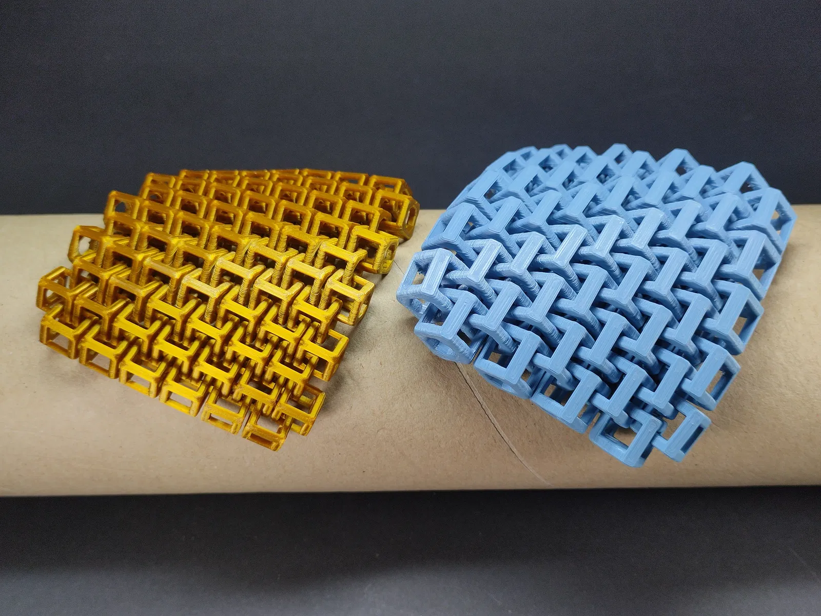 - Các sợi filament được sử dụng là Prusament PLA Viva la bronze và Prusament PLA Chalky blue