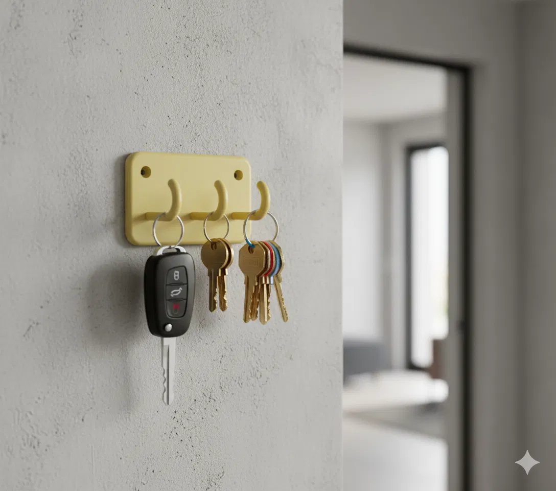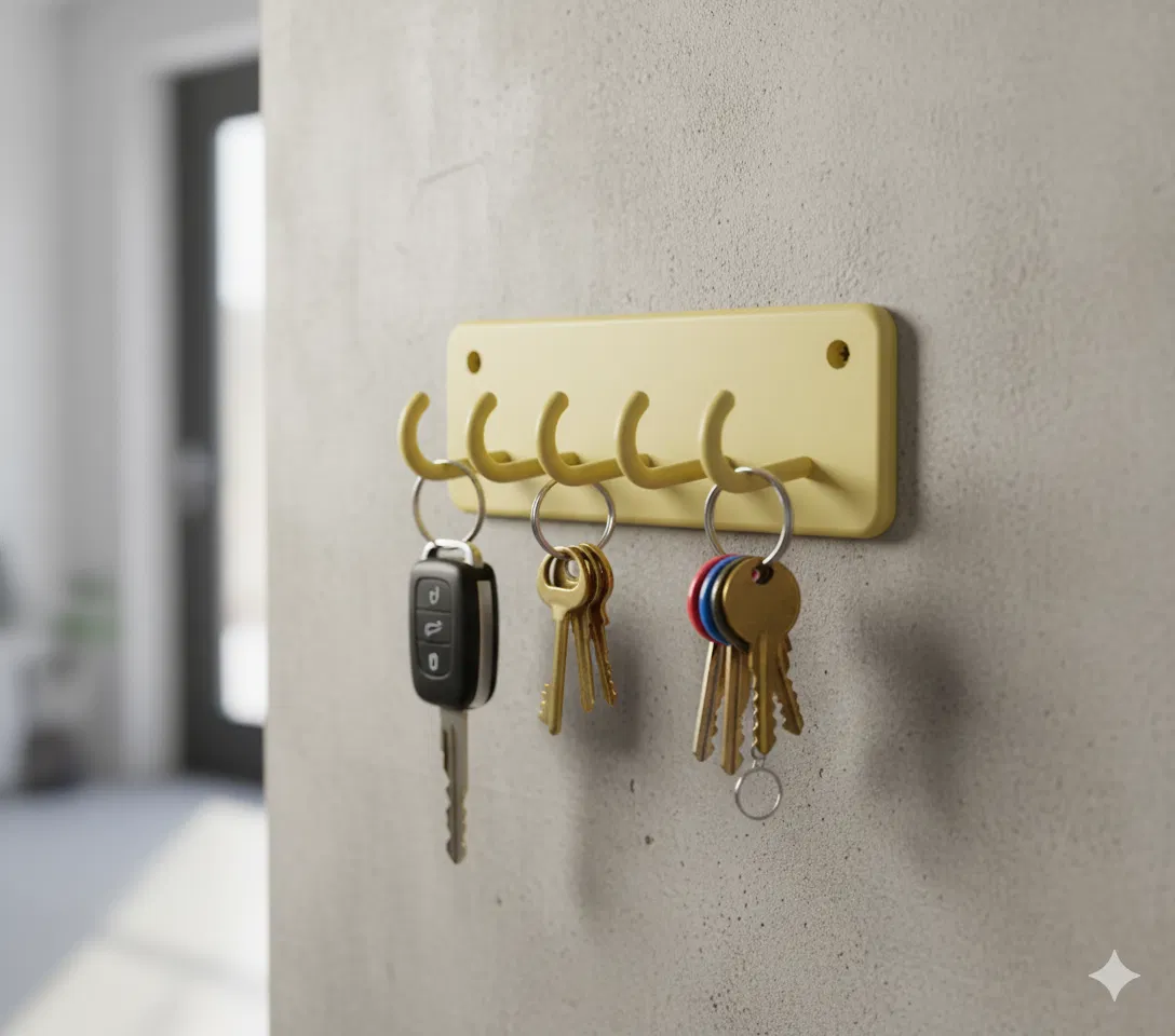 Kệ treo chìa khóa tối giản gắn tường với phiên bản 3 & 5 móc — dễ in, đẹp mắt và hoàn hảo cho nhu cầu sử dụng hàng ngày