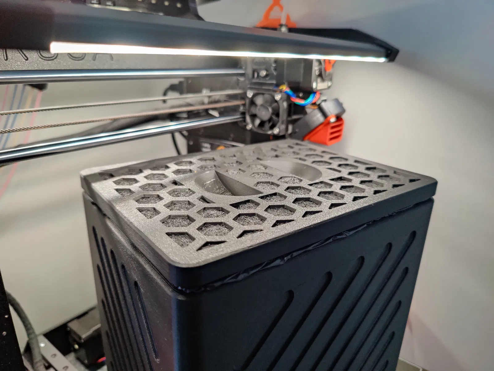 Nắp thùng cần 4 cái ren cấy M3 để giữ bộ lọc cố định. Tôi đã dùng bộ lọc than hoạt tính có thể cắt và cắt nó theo kích thước.