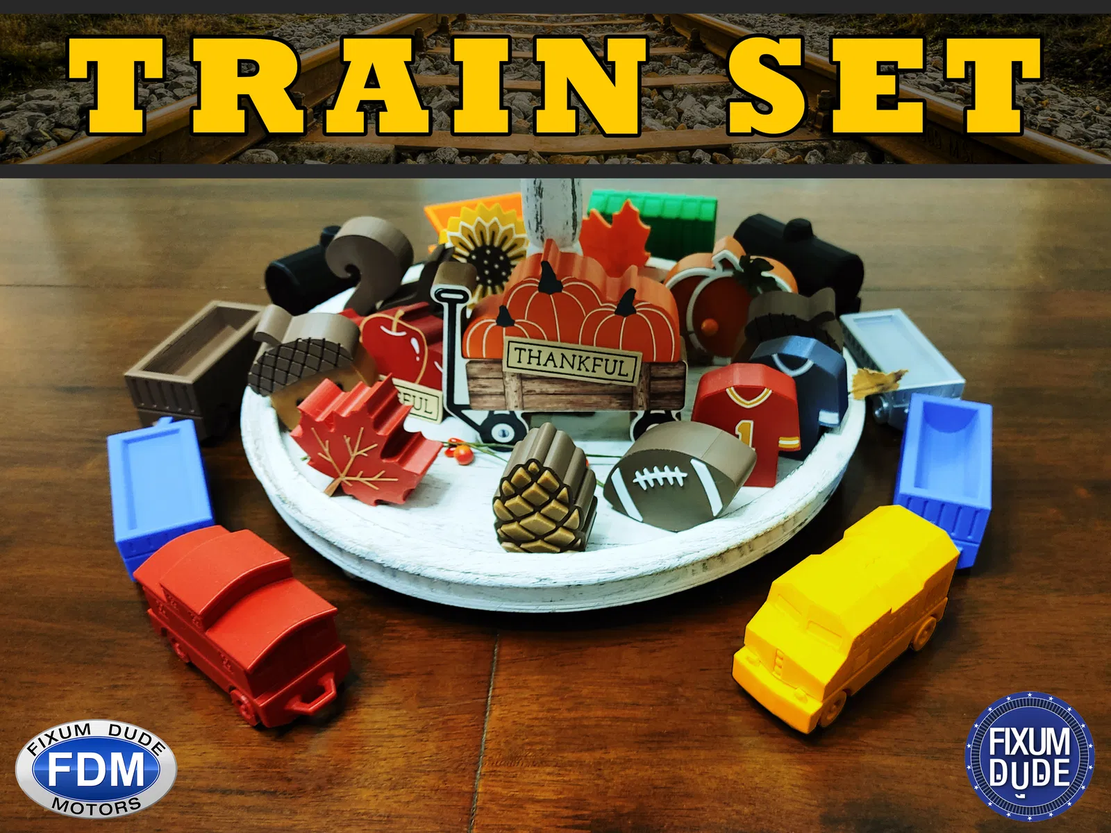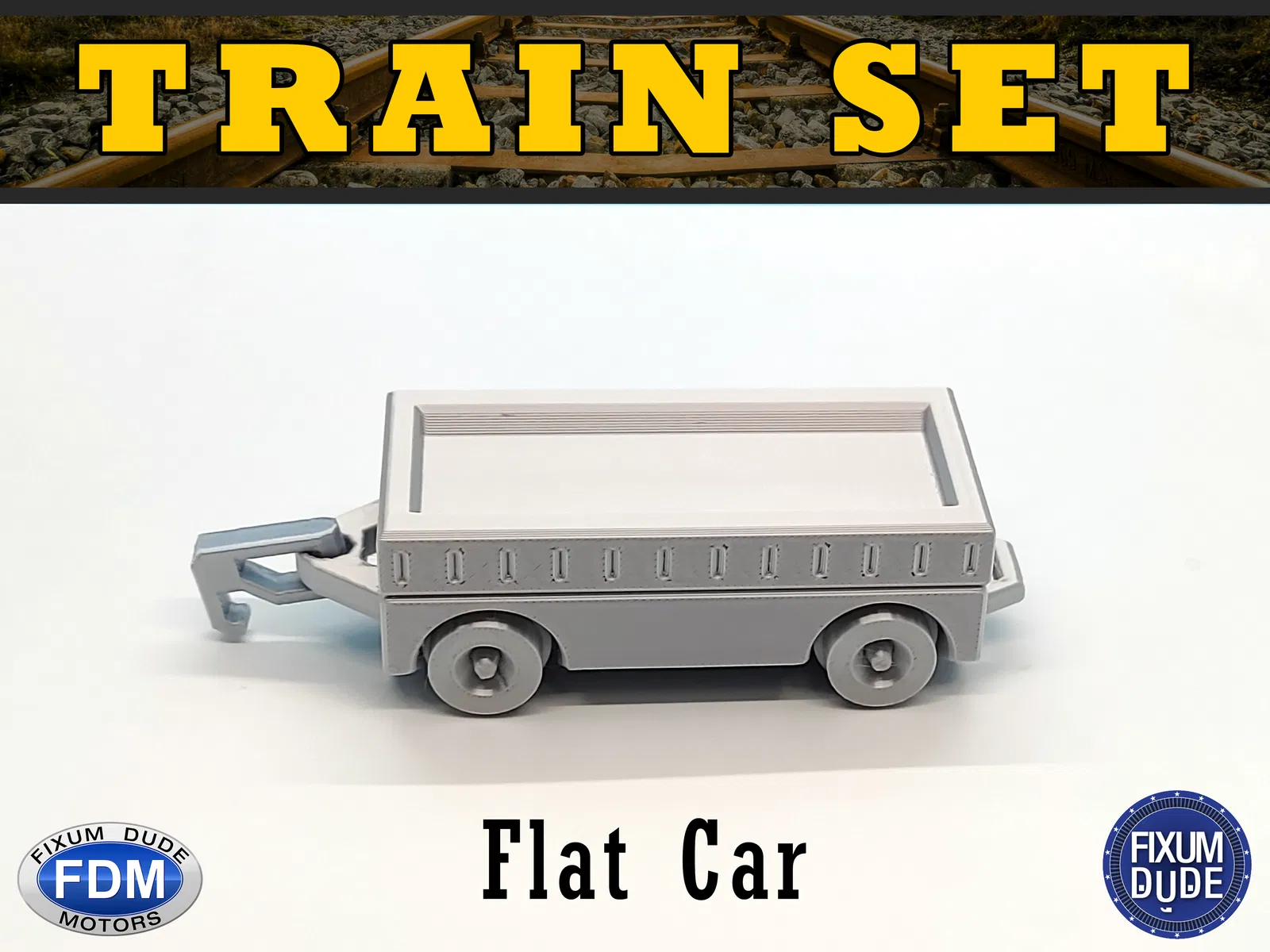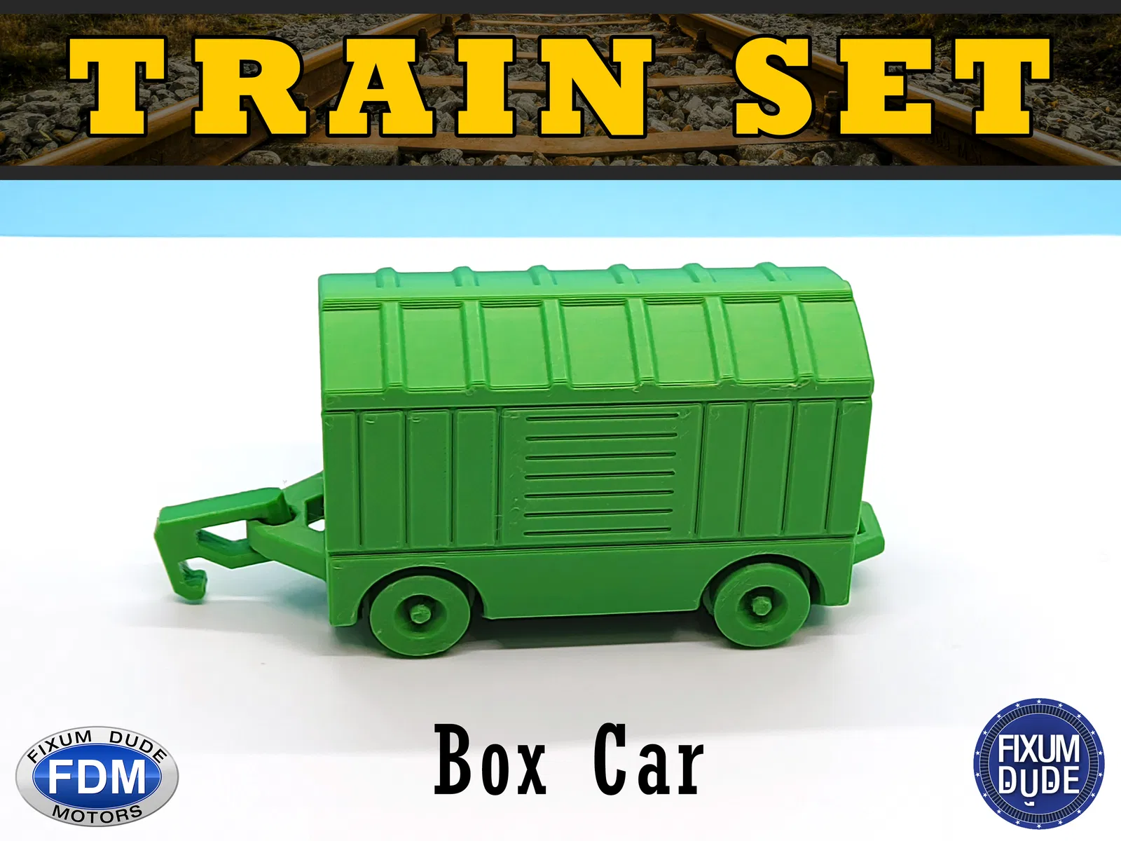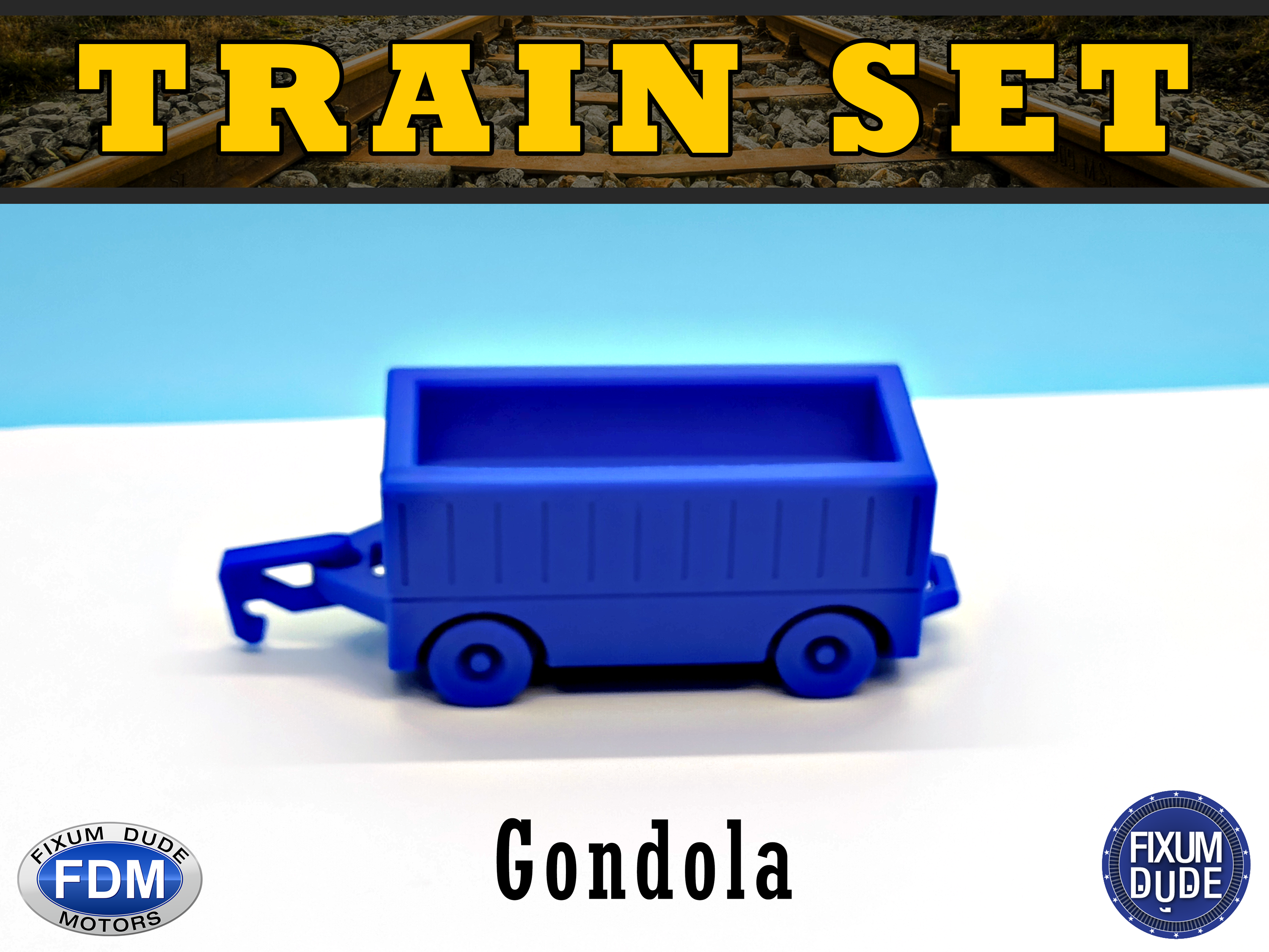 Bộ tàu diesel "in tại chỗ" Fixum Dude Motors gồm đầu máy và 5 toa xe. In không cần support, bánh xe và móc nối chạy được ngay. Thích hợp làm đồ chơi cho bé, in cùng nhau tạo nên một đoàn tàu vui nhộn.