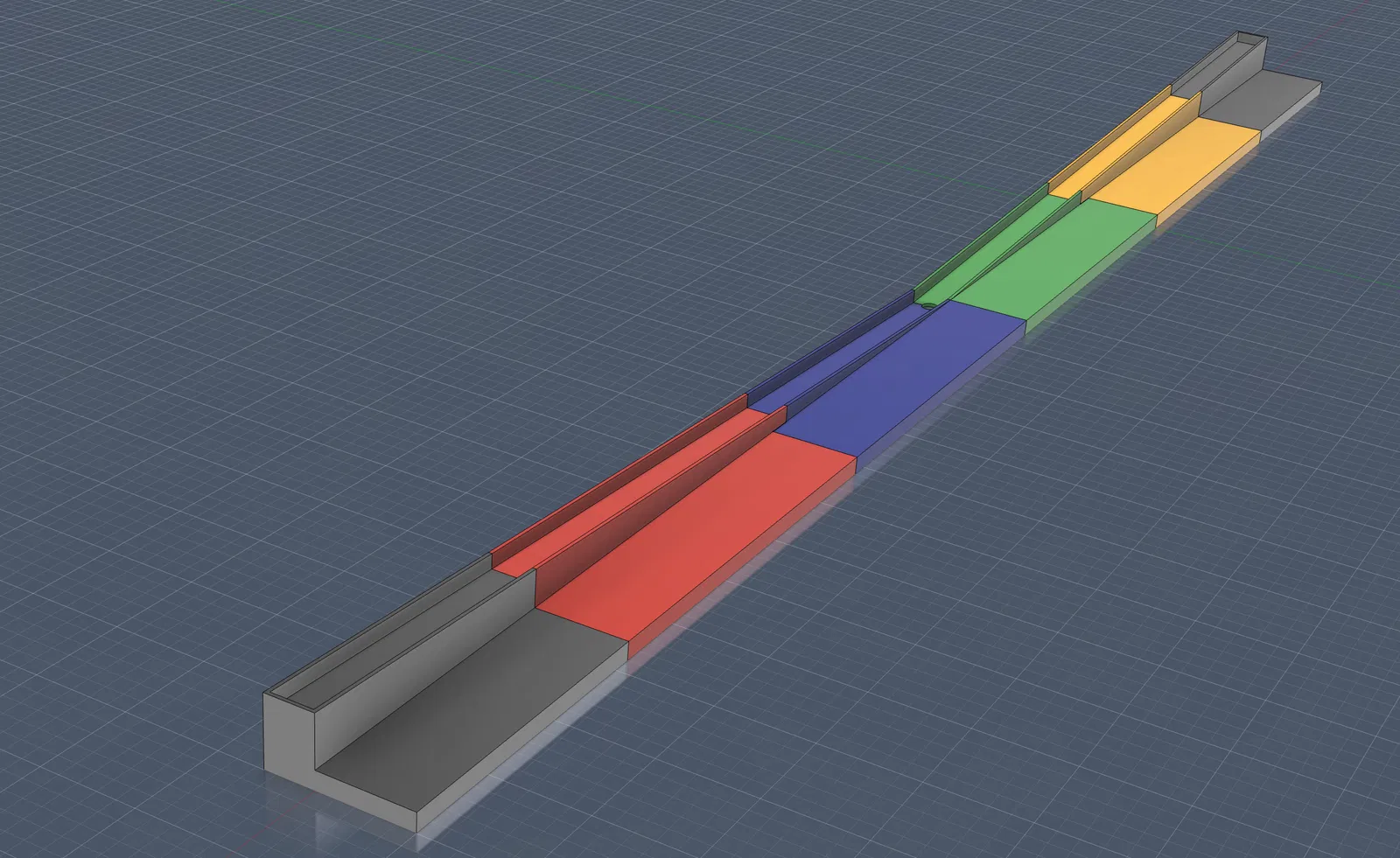 Bộ thu nước 6 đoạn (4 x 230mm & 2 x 160mm) thu thập nước mưa, nước nhỏ giọt. Tổng chiều dài 1240mm, vừa vặn trên mâm in. Thiết kế dạng phân đoạn giúp dễ dàng in ấn và lắp ráp.