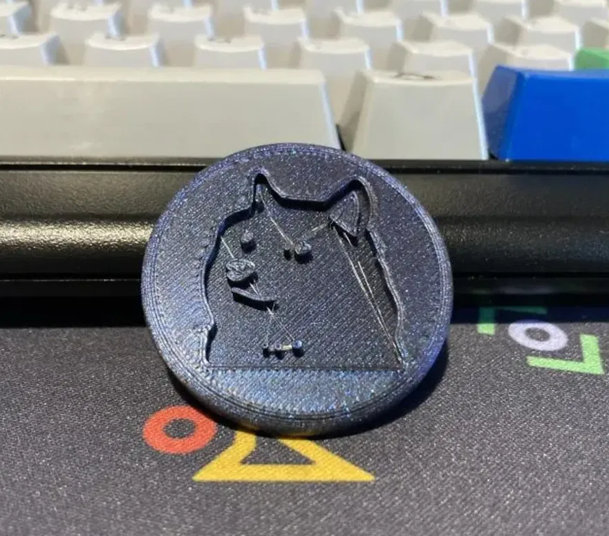 Mình đã cải tiến thiết kế dogecoin để giảm hiện tượng bridging và tăng độ bám dính với bàn in. Nó cũng mỏng hơn nên trông giống đồng xu hơn nha.