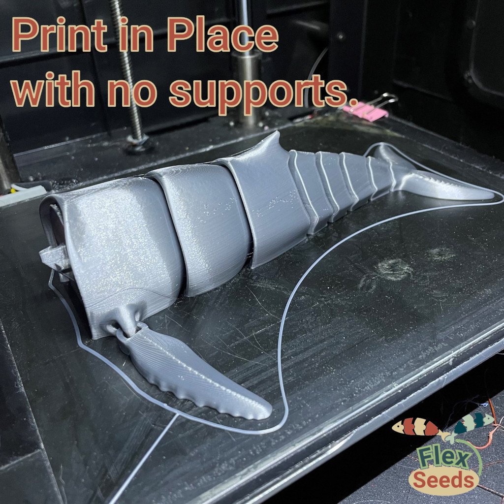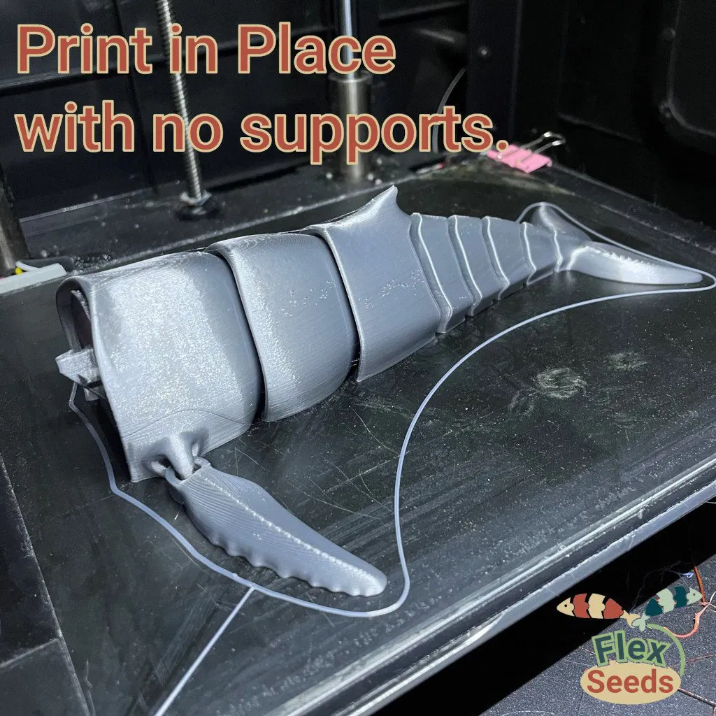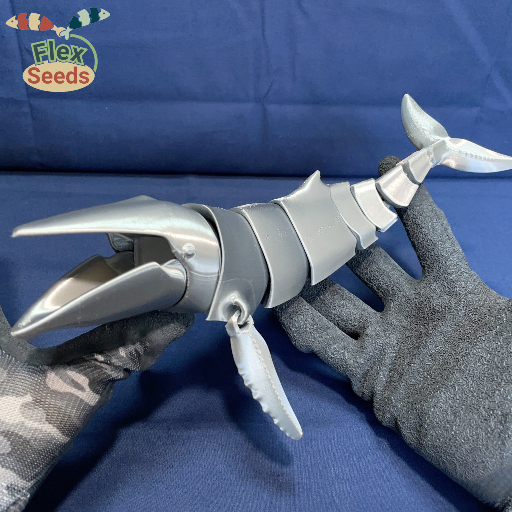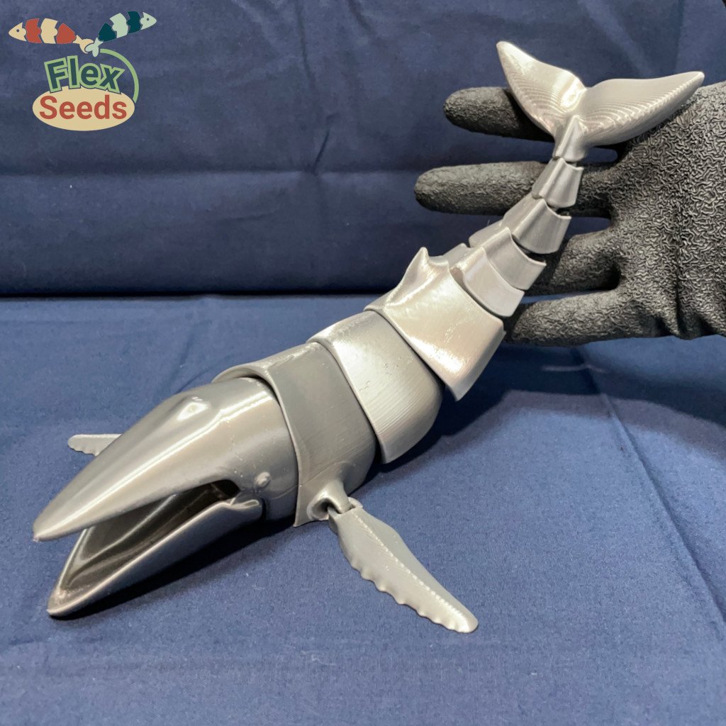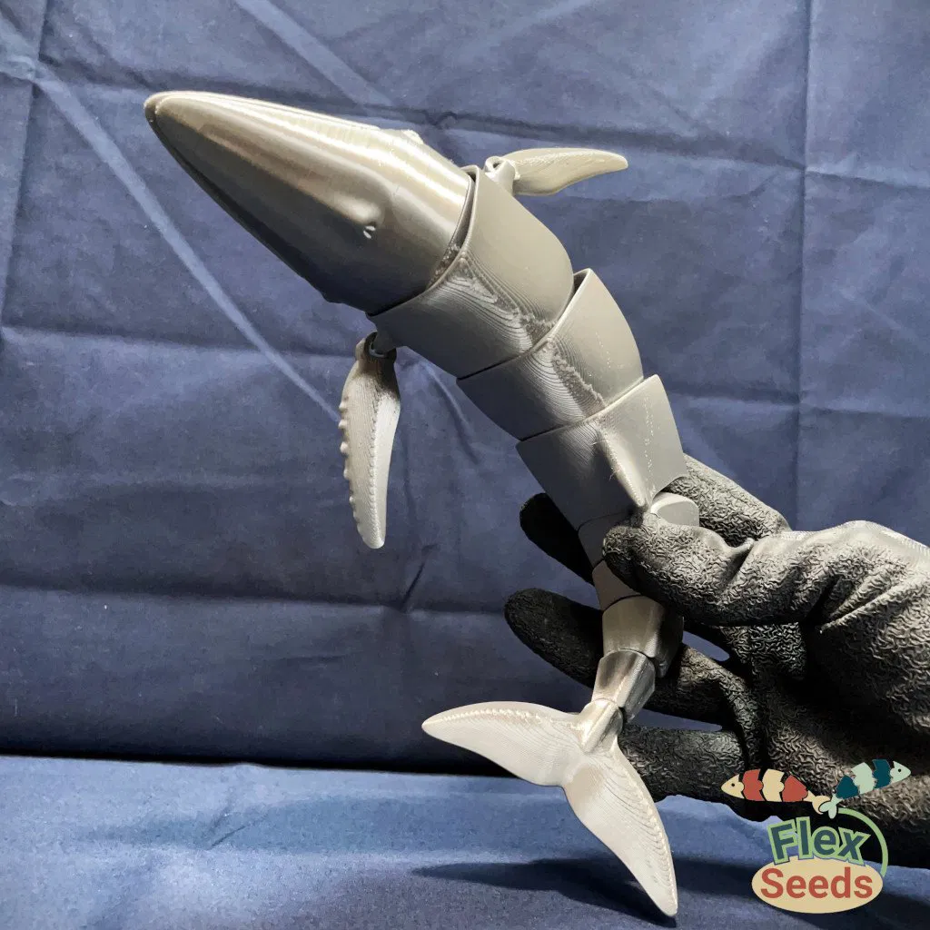 Mẫu Cá Voi Hùm Flexi mới với khớp cầu, có thể mở miệng và in liền không cần hỗ trợ. Bản cập nhật sửa lỗi phần miệng và tăng cường độ bền khớp nối. Lưu ý an toàn khi sử dụng gần trẻ nhỏ và thú cưng.