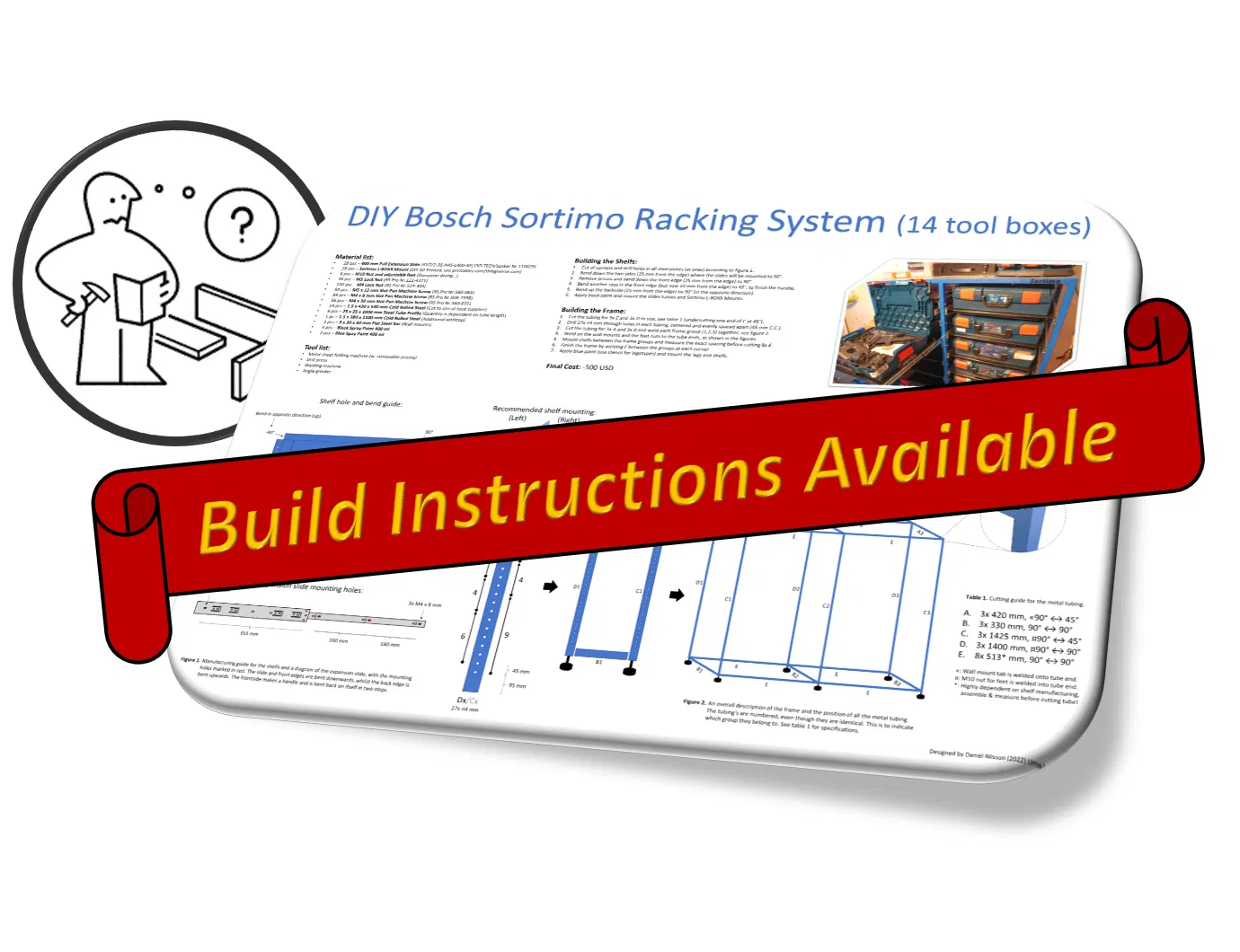Tui có xài cái giá đỡ này lúc làm cái hệ thống kệ đồ nghề tự chế của tui, bữa đó làm vừa khít cho 14 cái hộp bự nhỏ khác nhau luôn (coi hình nha). Bản vẽ thiết kế thì tui để trong mục “DIY Bosch Sortimo Racking System.pdf" rồi đó.