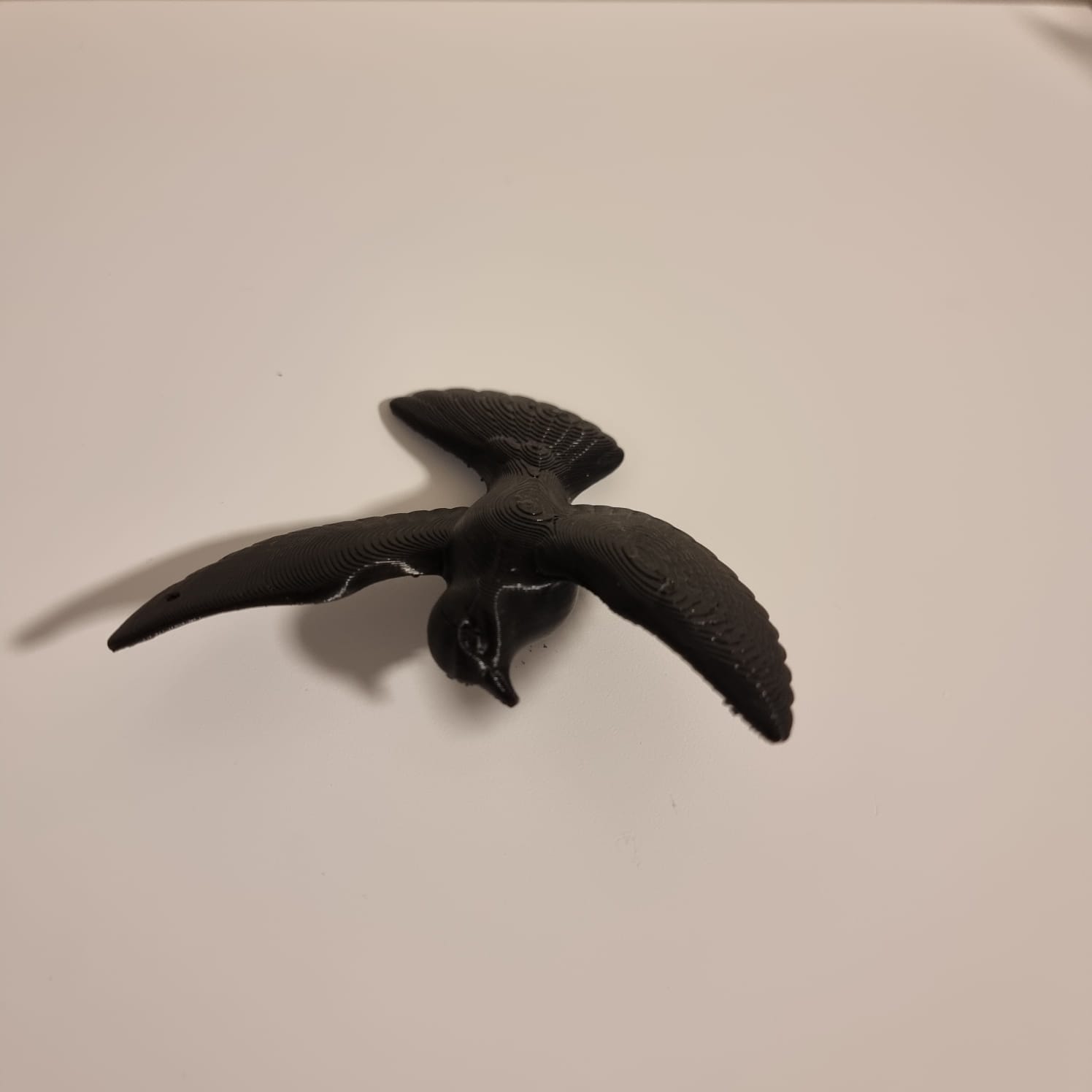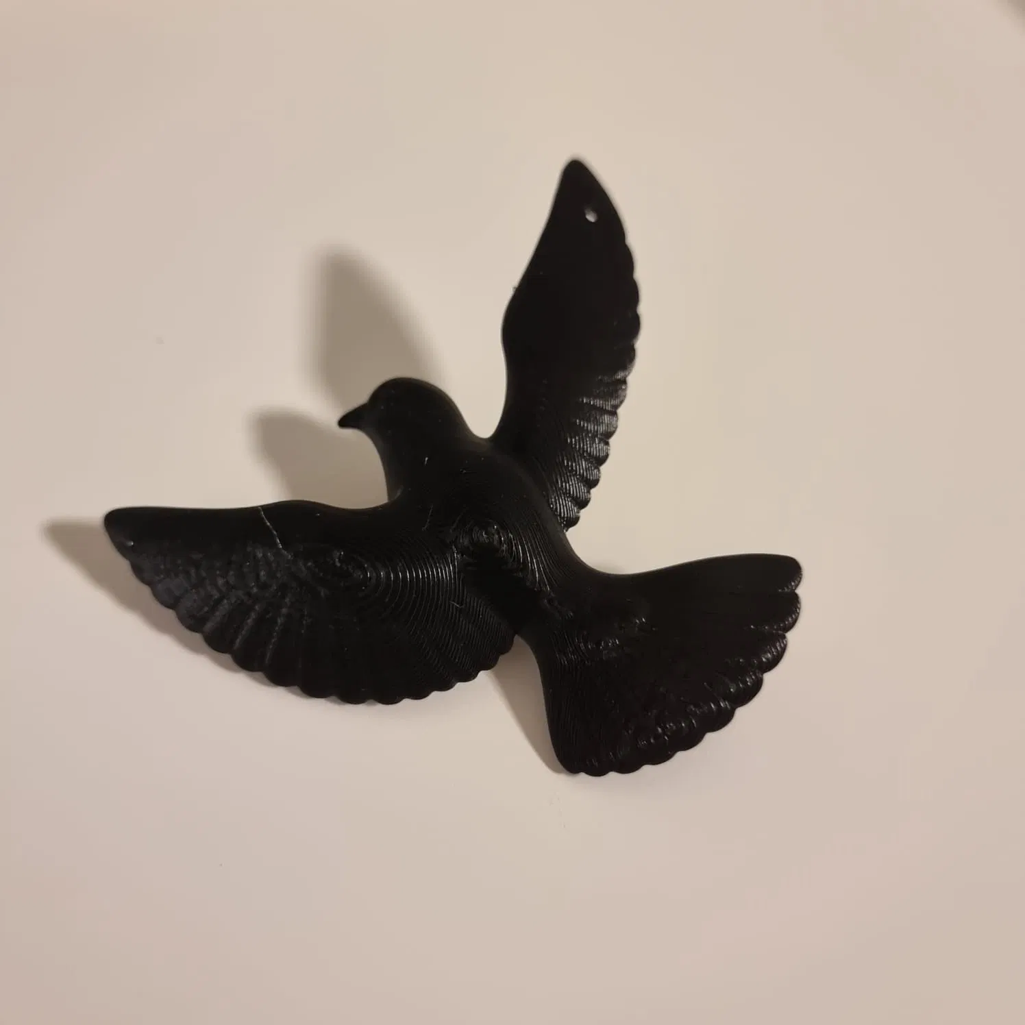 Bồ câu dang rộng đôi cánh bay lượn, được in bằng vật liệu màu đen tuyền tạo độ tương phản mạnh mẽ. Trang trí nhà cửa, cây thông Noel, mang không khí lễ hội, tình bạn.