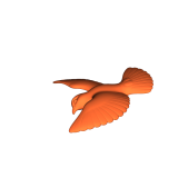 Con chim bồ câu được miêu tả với đôi cánh dang rộng và hơi cong, gợi lên dáng vẻ bay lượn đầy sinh động. Các chi tiết khá rõ ràng, đặc biệt là những vệt đường in mịn, đồng tâm có thể nhìn thấy trên bề mặt - một đặc điểm đặc trưng. Những đường này chạy theo đường cong của cơ thể và lông vũ của con chim, tạo thêm một lớp vân tinh tế cho đôi cánh và chiếc đuôi.