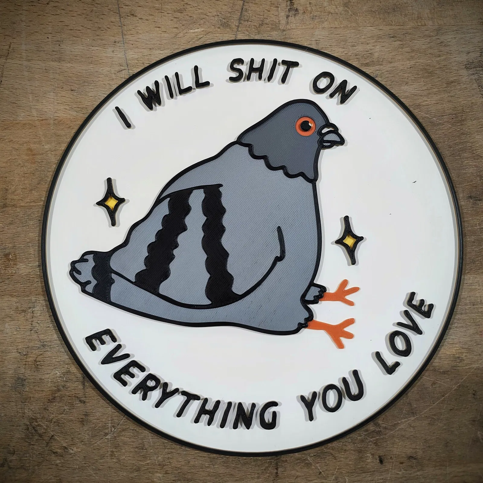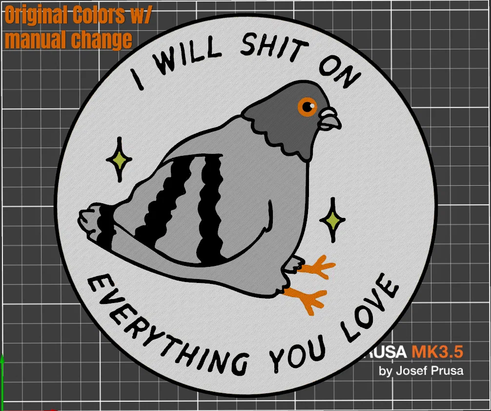 Nếu bạn đang thấy chán nản, chú chim bồ câu này có thể an ủi bạn... hoặc không. Mô hình đế in này chuyển thể từ tác phẩm gốc, với 6 màu sắc và bản cắt sẵn cho MMU/AWS. Thích hợp cho ai thích sự hài hước, châm biếm.