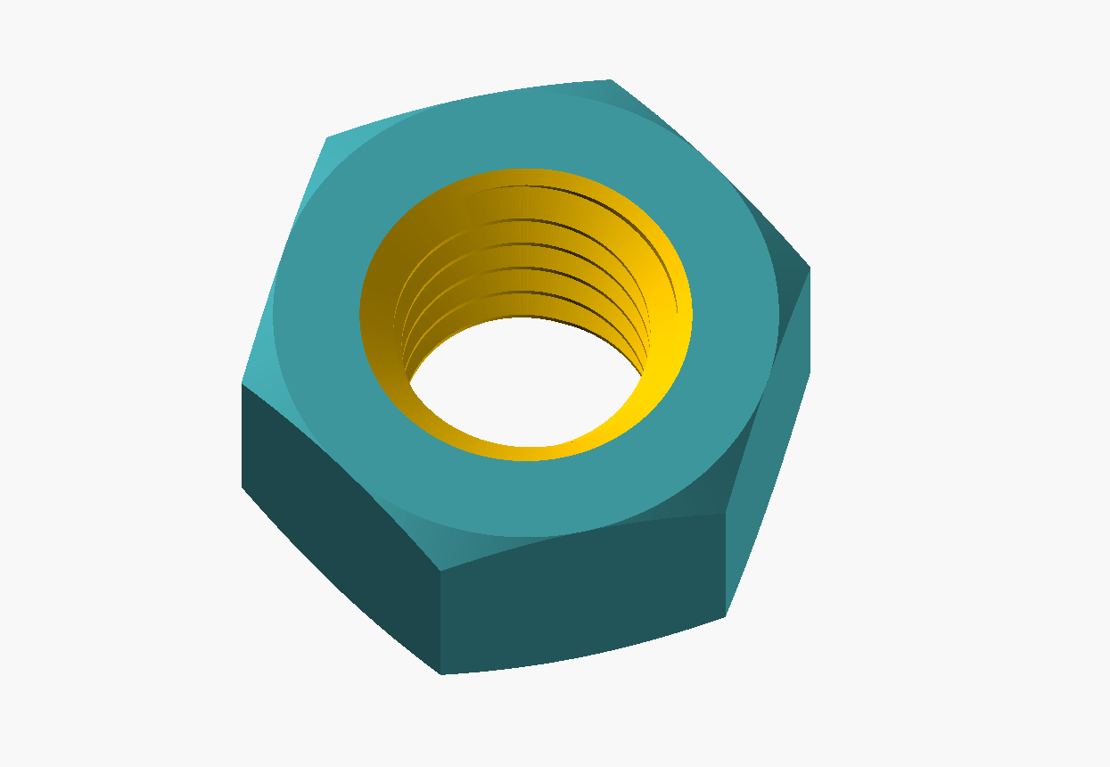 Bộ sưu tập đầy đủ các loại đai ốc tiêu chuẩn metric. Thiết kế ren được cải tiến không còn cần xem xét dung sai của máy in nữa - ít nhất là đối với các đai ốc đủ lớn cho máy in. In với độ dày lớp thấp, ví dụ: với độ dày lớp tối đa 0.15 mm khi sử dụng đầu phun 0.4 mm.