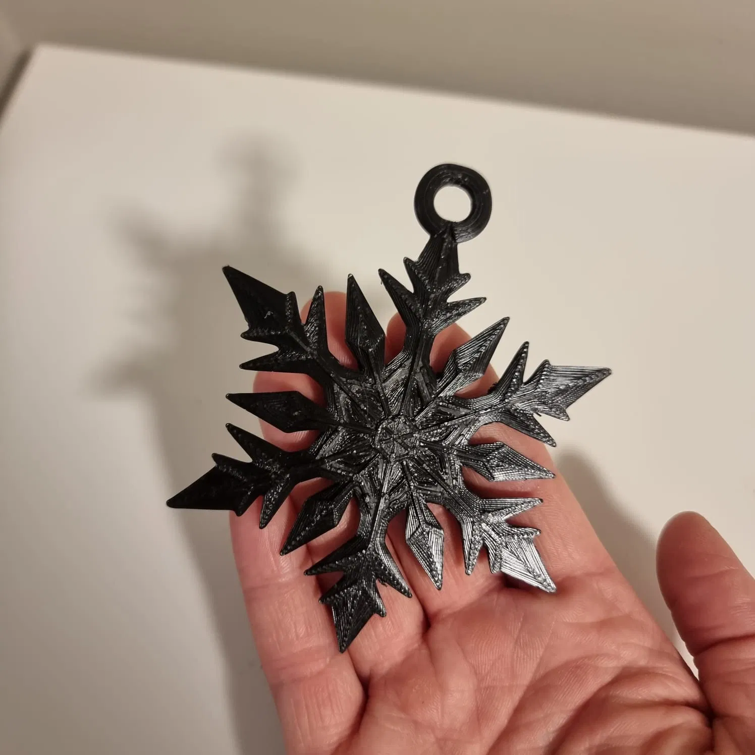 Phụ kiện cây thông Noel in 3D hình bông tuyết sáu cánh tuyệt đẹp. Thiết kế chi tiết, tinh thể sắc sảo, bắt sáng làm nổi bật vẻ đẹp băng giá, mang không khí Giáng Sinh ấm áp đến ngôi nhà của bạn.