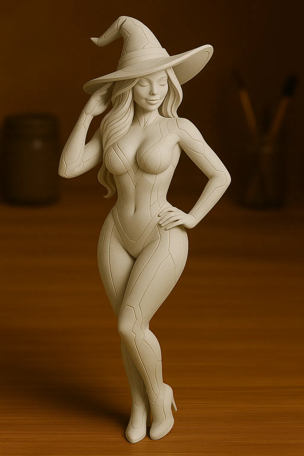 Tượng phù thủy 3D in theo phong cách hình học tương lai, vừa thanh lịch vừa bí ẩn. Thích hợp làm đồ trang trí Halloween, quà tặng cho người sưu tầm, hoặc fan của thể loại fantasy và phong cách thiết kế hiện đại.