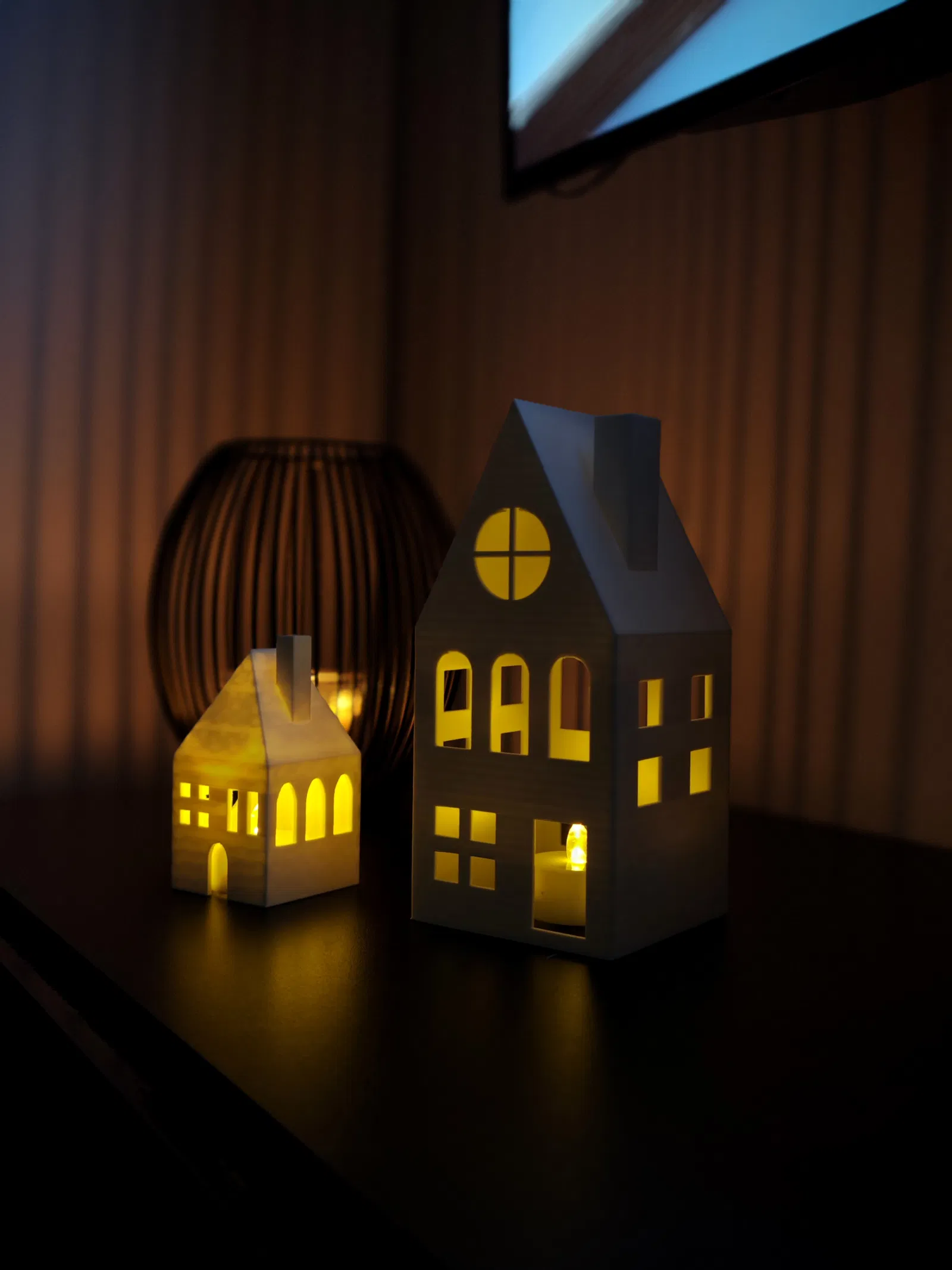 Ngôi nhà nhỏ trang trí phong cách hiện đại – lý tưởng làm nhà nến LED hoặc đồ trang trí mùa đông. Mô hình này in nhanh và dễ dàng, hoàn hảo cho nến LED.