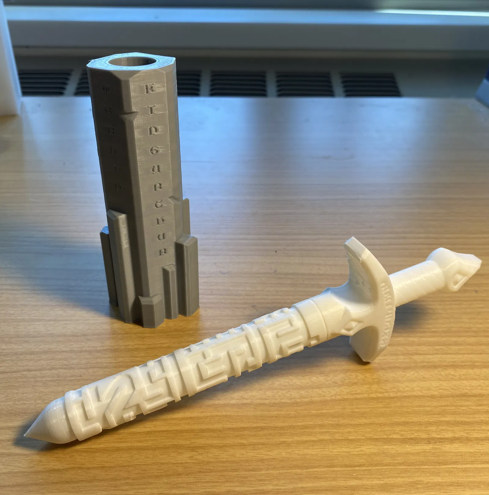 Cái này là một món quà xếp hình tuyệt vời đó nha, vì bạn có thể giấu quà như tiền bên trong lưỡi kiếm. Có hai phiên bản lưỡi kiếm, có thể tháo rời khỏi cán và mũi kiếm. Tất cả các bộ phận đều rời nhau nên bạn có thể in nhiều màu khác nhau, cũng như dễ dàng in để đỡ phần. Mình đã in ở kích thước 50% và khi lắp ráp xong thì cao khoảng 8 inch. Mình dùng PLA với chế độ auto tree supports trên máy Elegoo Neptune 3 pro. Chúc vui và giải đố vui vẻ nha!