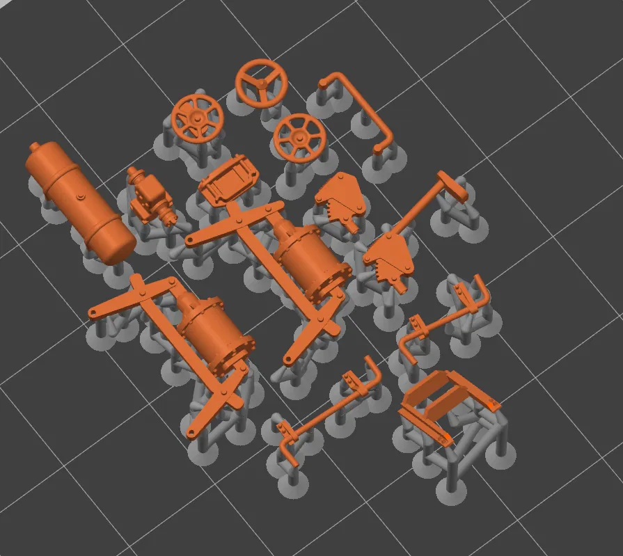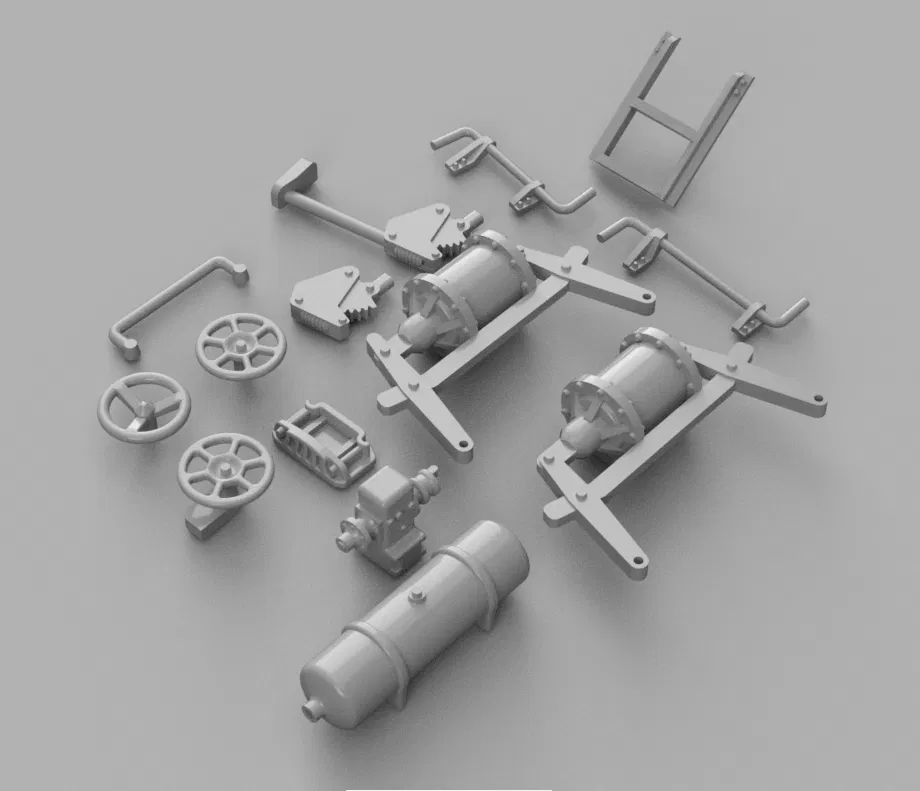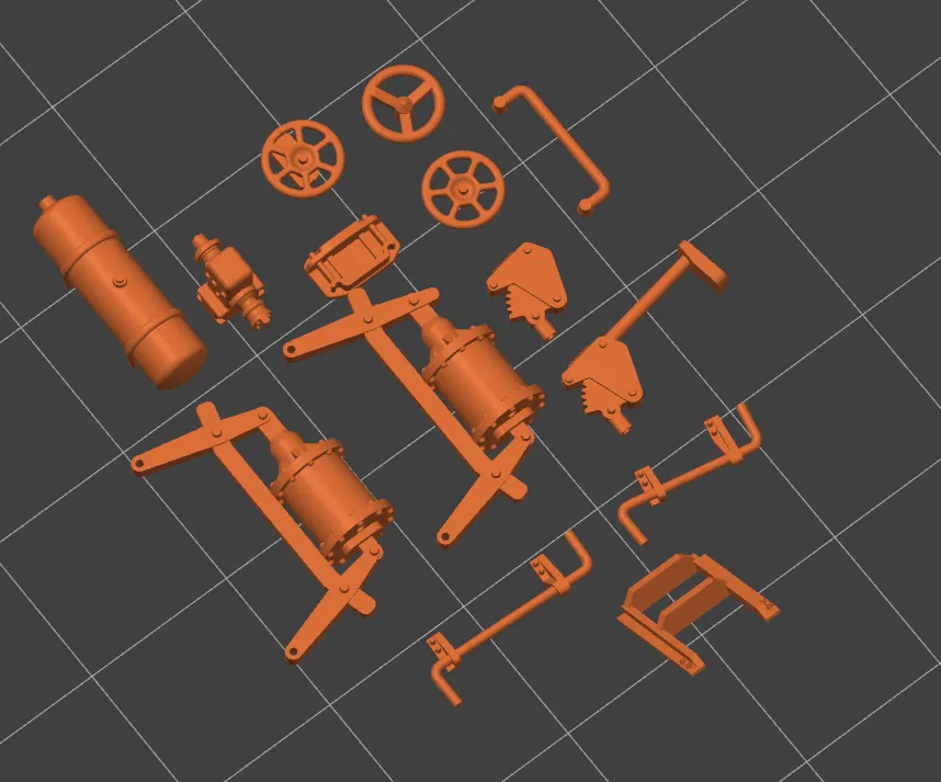 Bộ sưu tập các phụ tùng gầm xe tải theo khổ H0, mô phỏng theo toa xe lửa Liên Xô/Nga. Thiết kế cho in resin, có sẵn file STL, STEP và PrusaSlicer kèm support. Tỷ lệ 1:87, có thể tùy chỉnh.