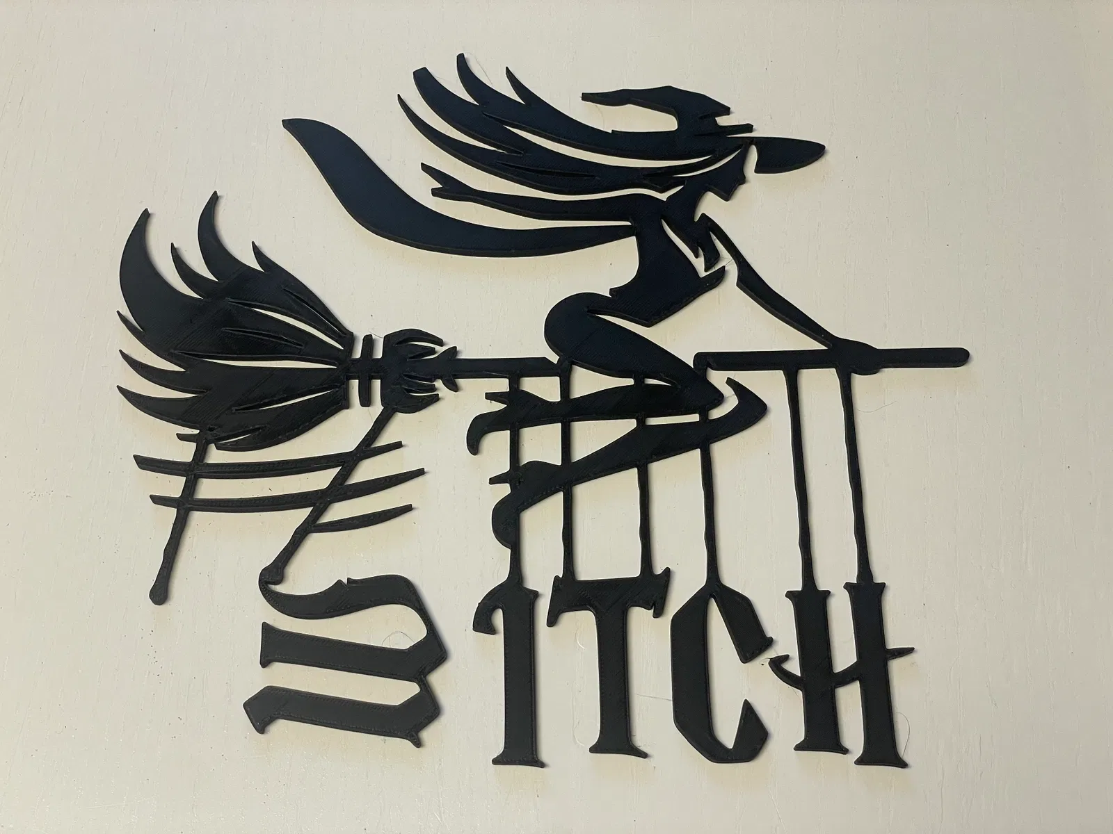 Một trò chơi chữ cổ điển về Halloween được biến tấu thành bảng hiệu. Bạn tui làm bảng hiệu này với ý tưởng chơi chữ giữa 'witch' và '*itch'. In bằng PETG đen, độ cao lớp 0.2mm. Nhớ mirror trước khi in để mặt nhẵn ra ngoài nha.