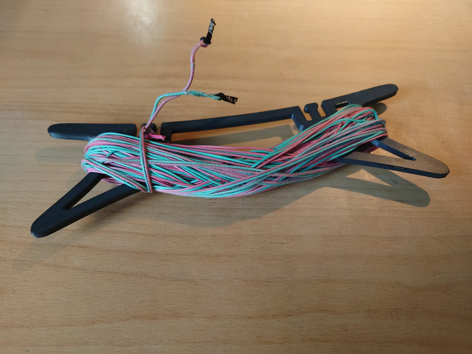 Một cuộn dây diều dễ in. Có các rãnh để bắt đầu và lỗ để giữ dây. Cuộn theo hình số tám để dây diều của bạn không bao giờ bị rối.