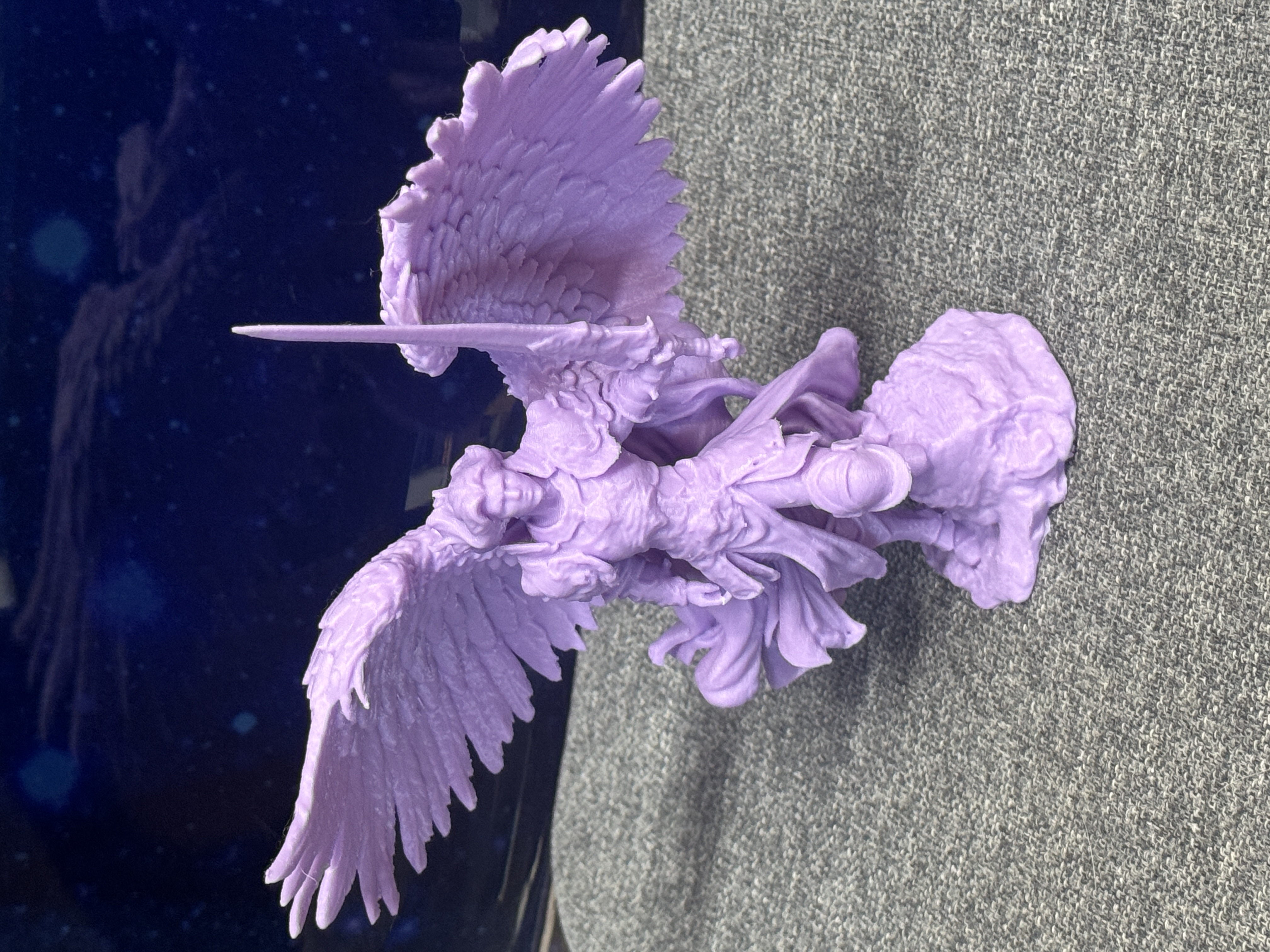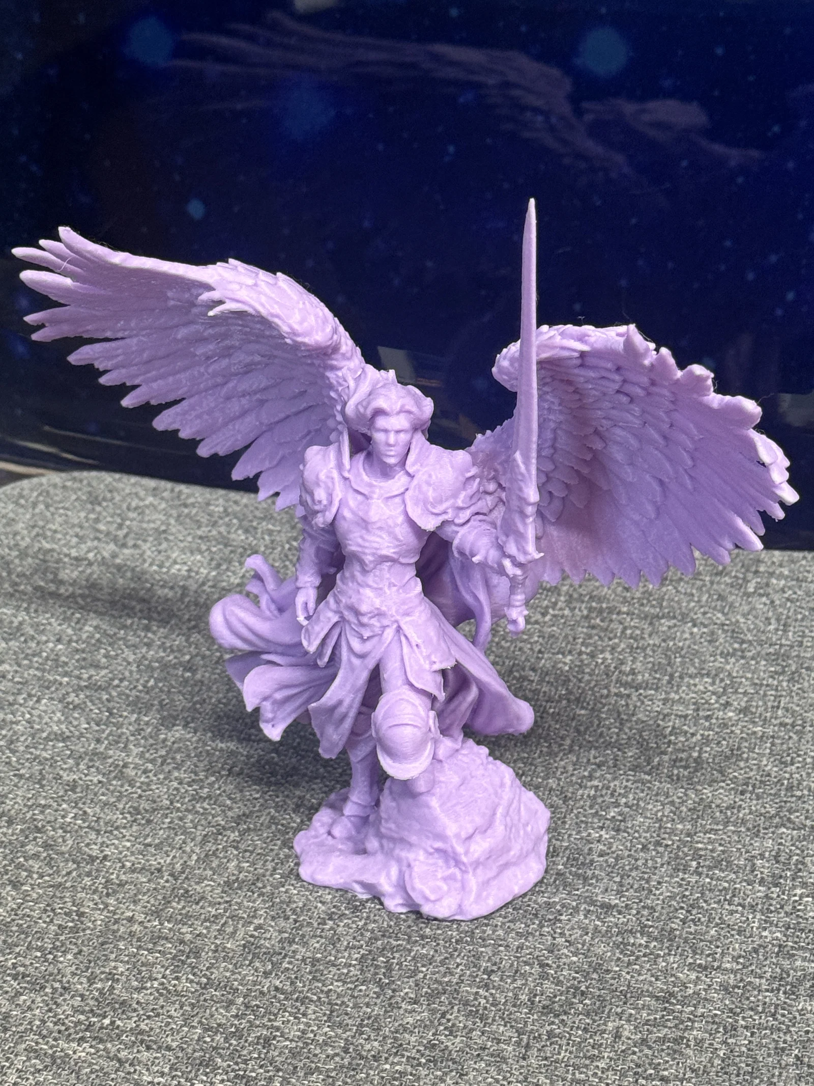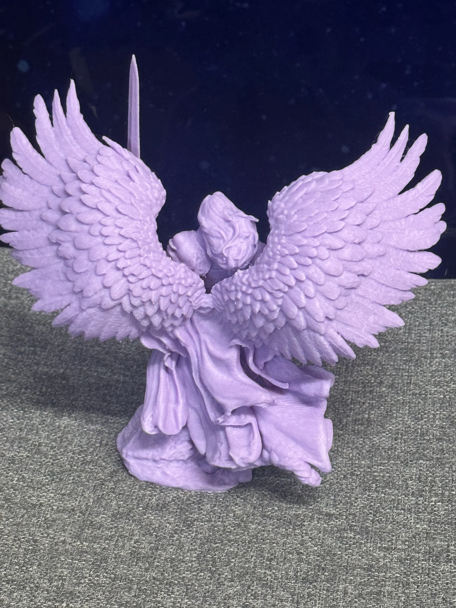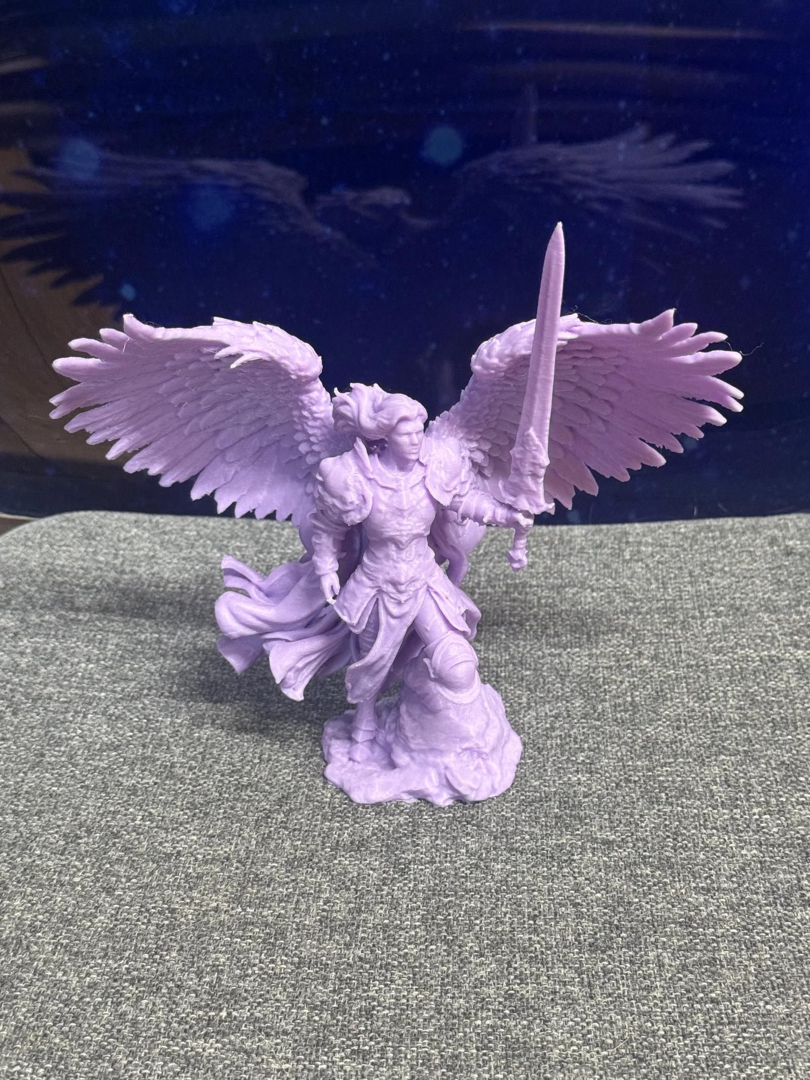 Một Vị Thần Hộ Mệnh, thiên thần hộ mệnh, thiên thần chiến binh, sẵn sàng bảo vệ. Tượng này có rất nhiều chi tiết. Tôi đã cố gắng giảm thời gian in và lượng vật liệu in, nhưng chưa đủ kỹ năng và kinh nghiệm. Nó vẫn yêu cầu rất nhiều bộ đỡ và không dễ tháo gỡ.