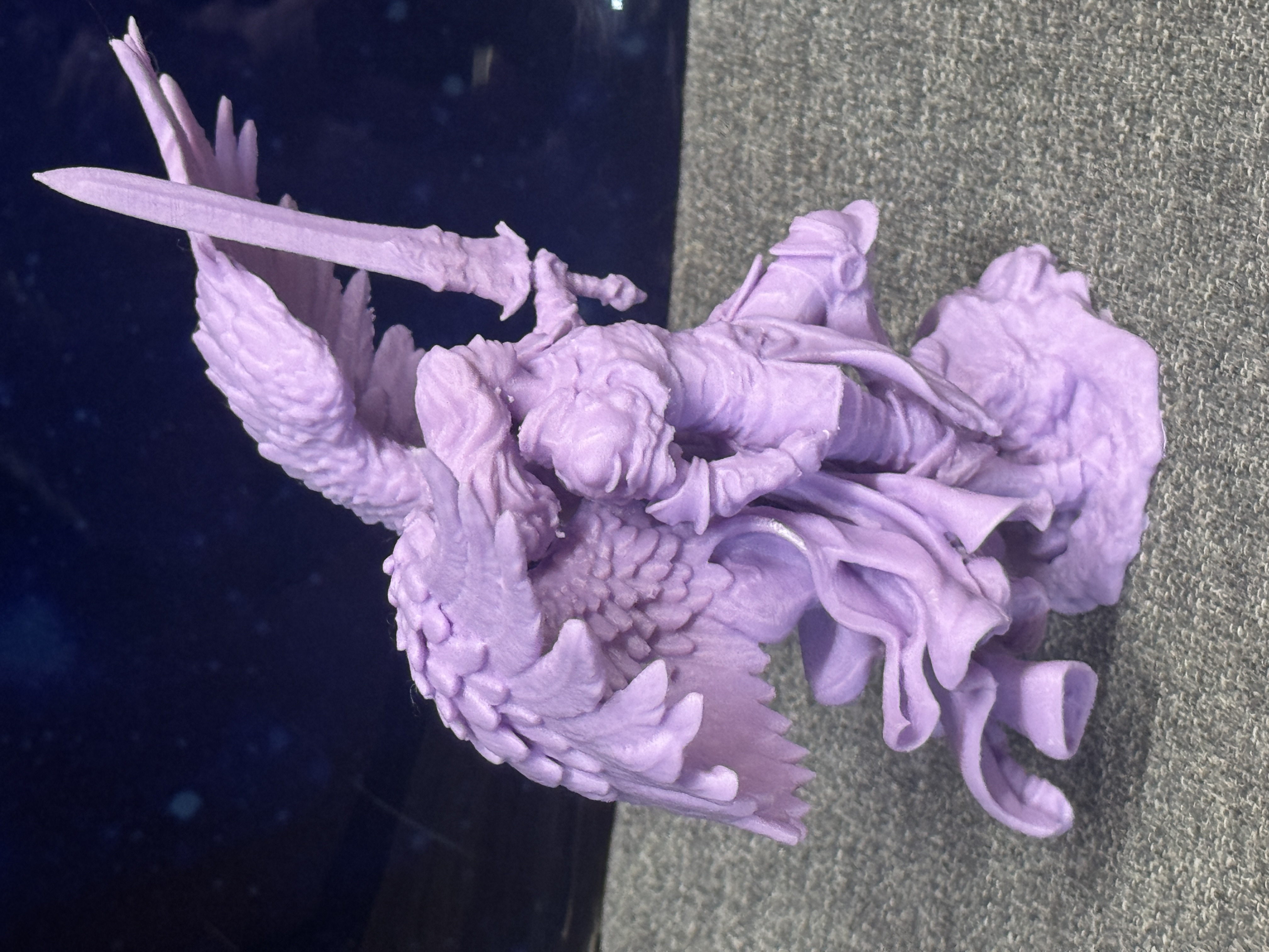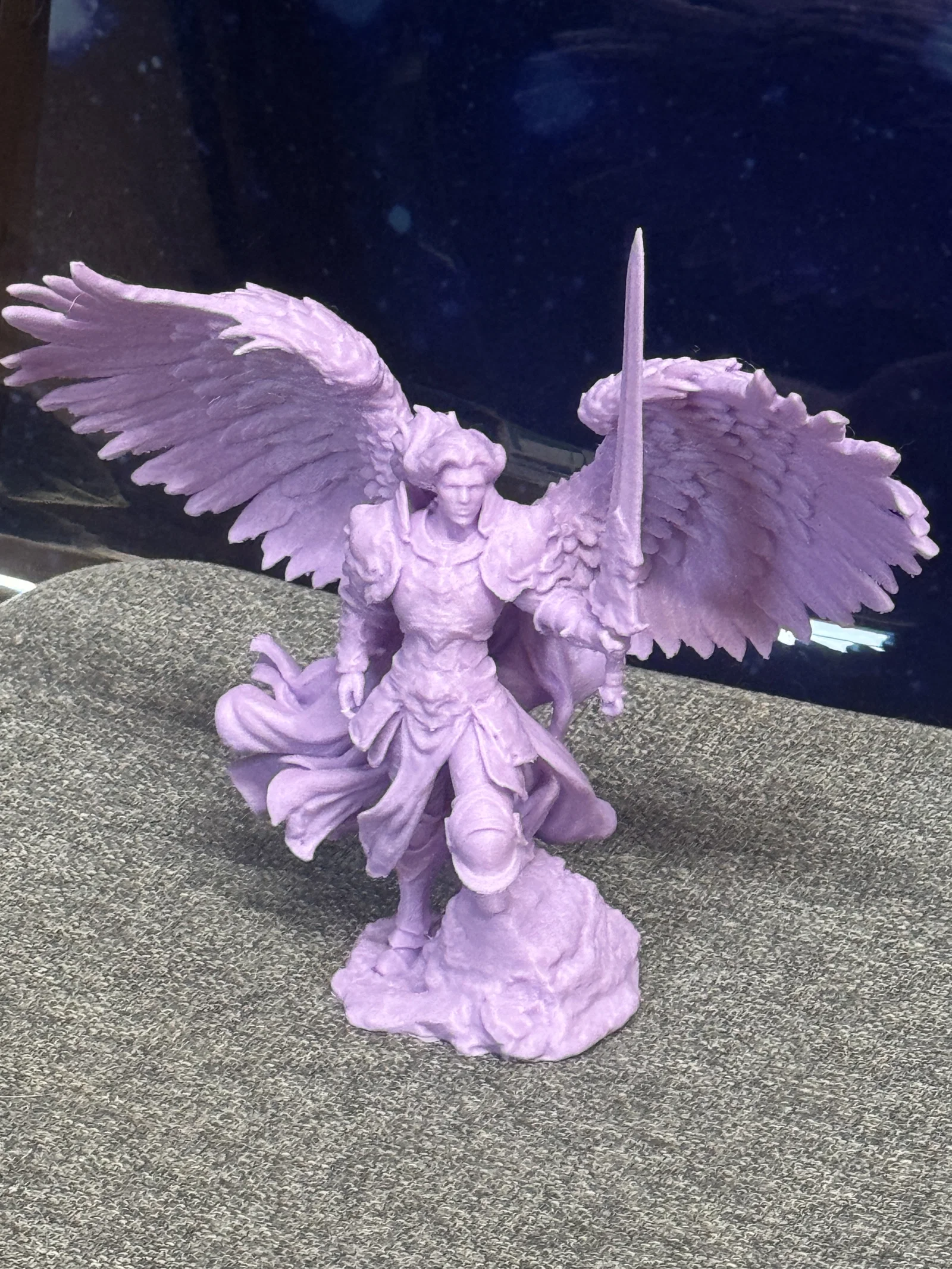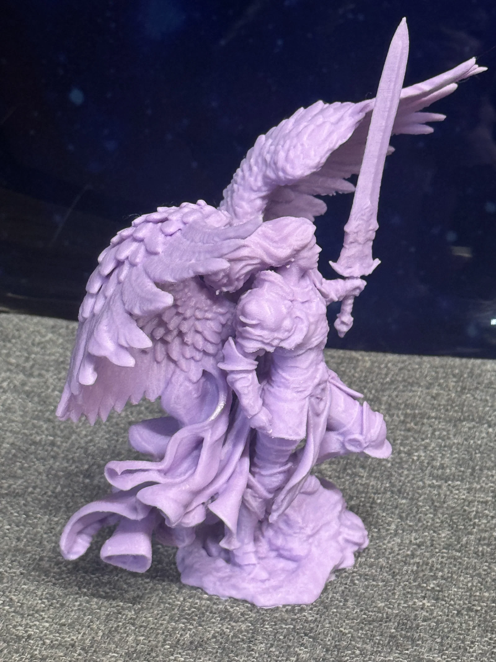 Một Vị Thần Hộ Mệnh, thiên thần hộ mệnh, thiên thần chiến binh, sẵn sàng bảo vệ. Tượng này có rất nhiều chi tiết. Tôi đã cố gắng giảm thời gian in và lượng vật liệu in, nhưng chưa đủ kỹ năng và kinh nghiệm. Nó vẫn yêu cầu rất nhiều bộ đỡ và không dễ tháo gỡ.