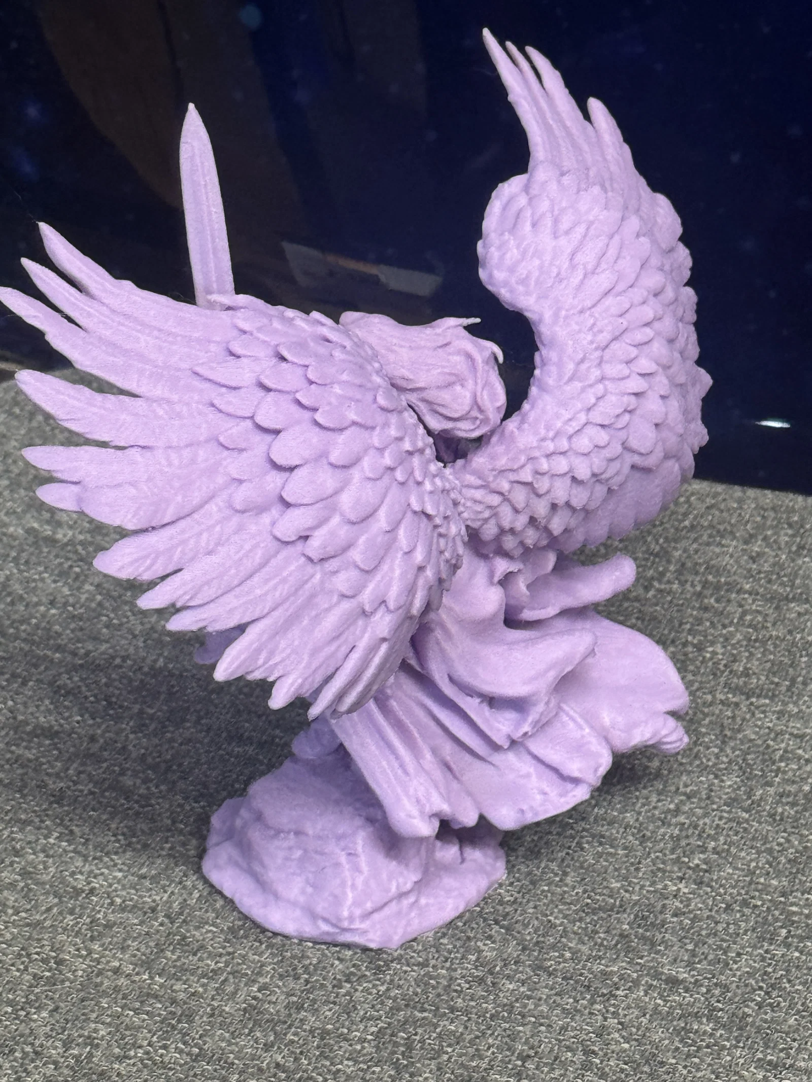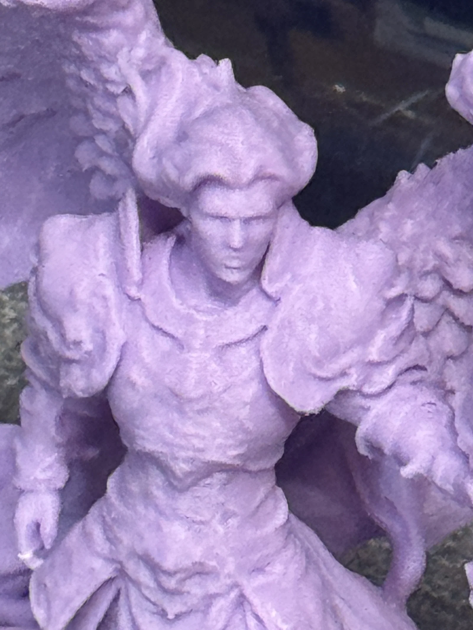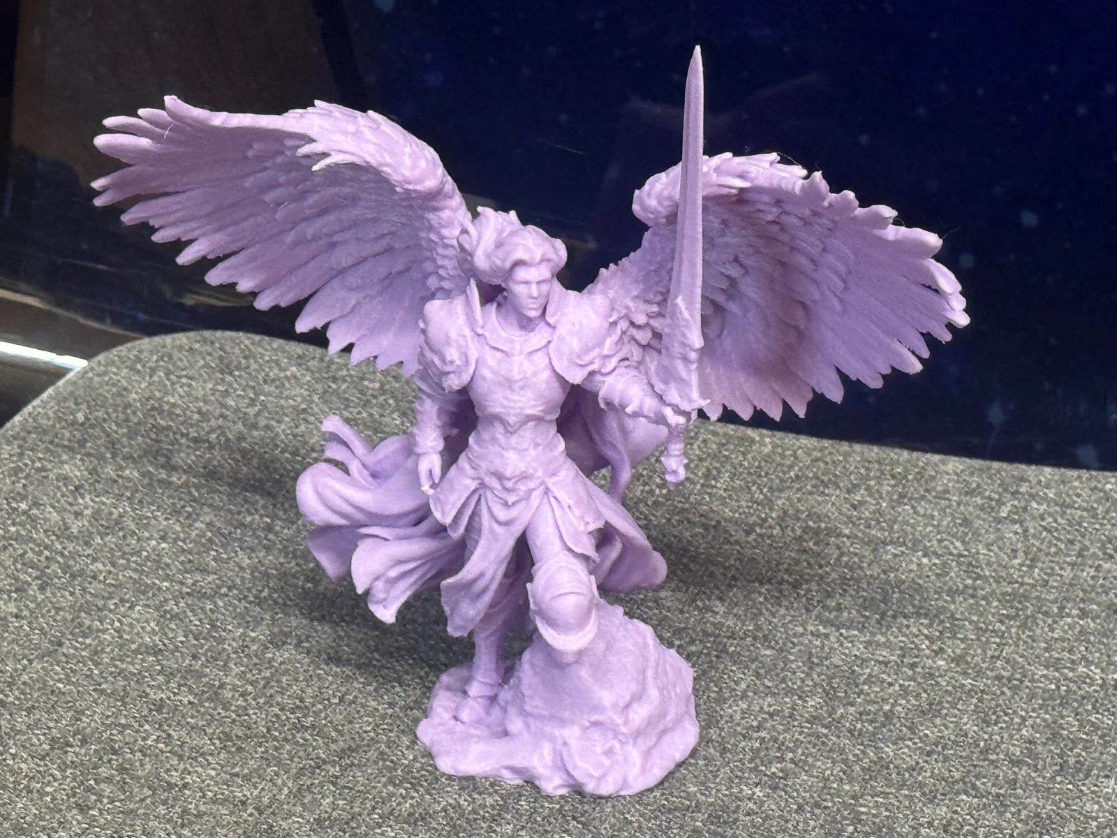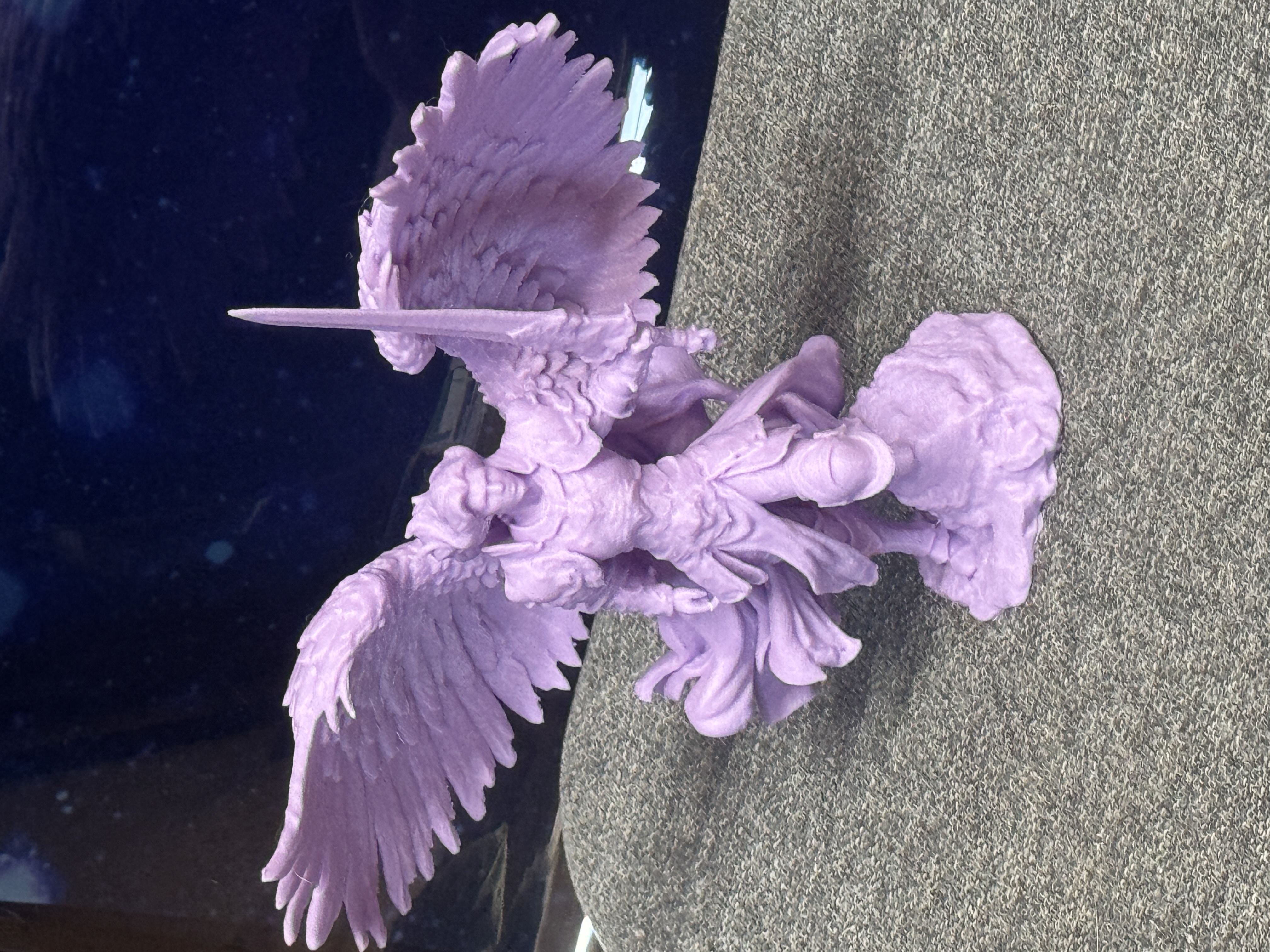Một Vị Thần Hộ Mệnh, thiên thần hộ mệnh, thiên thần chiến binh, sẵn sàng bảo vệ. Tượng này có rất nhiều chi tiết. Tôi đã cố gắng giảm thời gian in và lượng vật liệu in, nhưng chưa đủ kỹ năng và kinh nghiệm. Nó vẫn yêu cầu rất nhiều bộ đỡ và không dễ tháo gỡ.