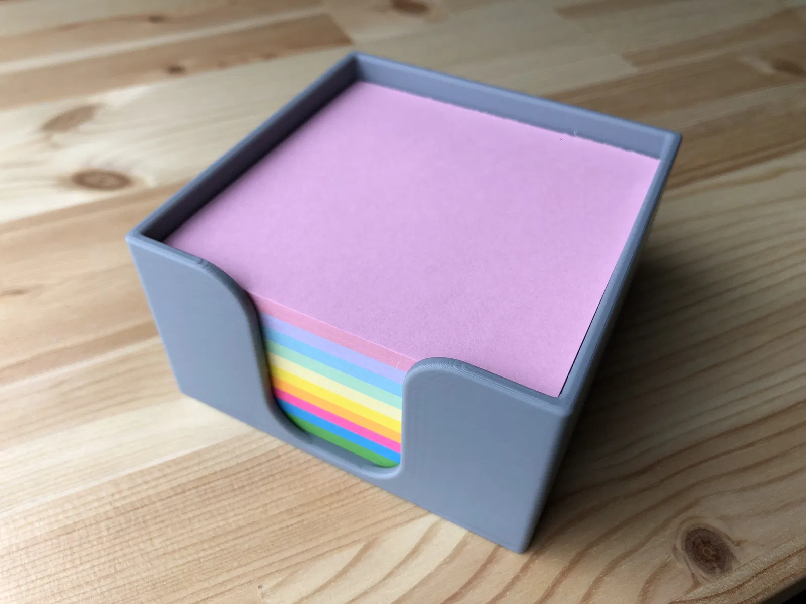 Cái holder này được thiết kế để chứa các loại giấy ghi chú vuông có kích thước 91x91mm, tuy nhiên tui cũng có làm thêm các phiên bản cho loại Post-It tiêu chuẩn 76x76mm và 76x127mm luôn nha.