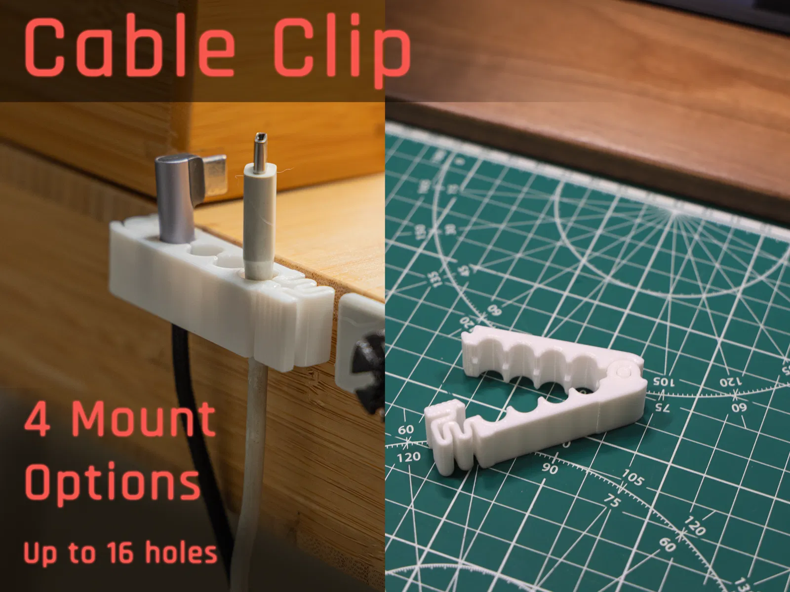 Đừng làm thêm một cái kẹp cáp nữa! Tôi đã làm cái này để giải quyết vấn đề của kẹp Klamma. Nó có thiết kế chắc chắn, 16 kích cỡ và 4 tùy chọn gắn kết: băng dính hai mặt, dây rút nhựa, vít/keo, hoặc chỉ keo. In bằng PLA/PETG, không cần hỗ trợ. Kích thước lỗ cáp 7.5mm.