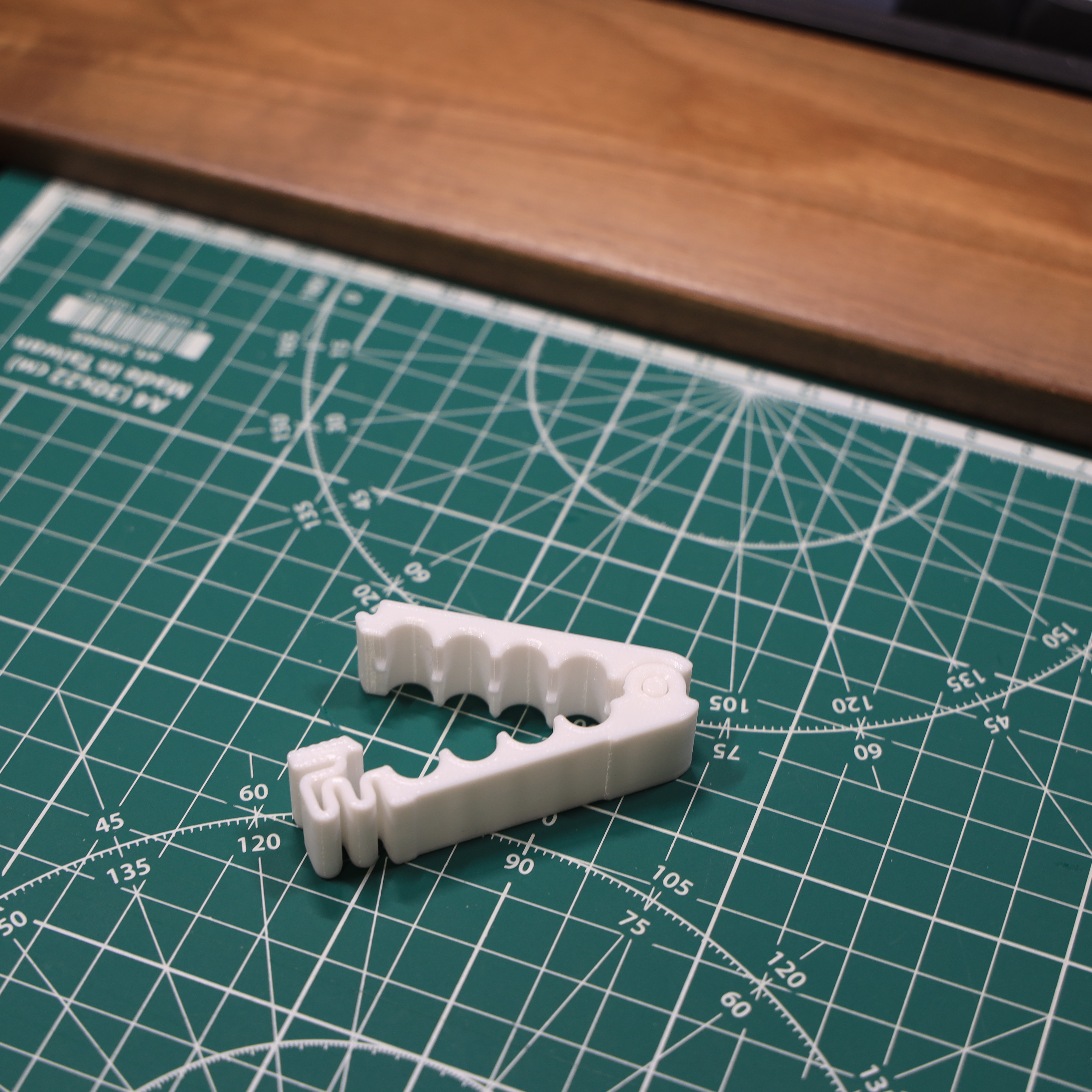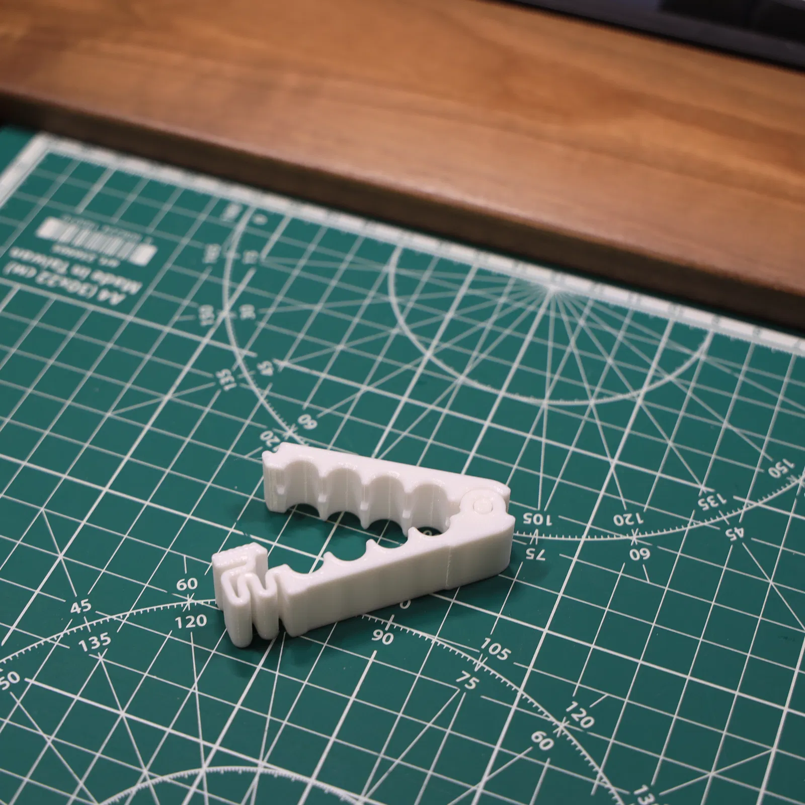 Tôi đã thử dùng cái kẹp cáp Klamma rất phổ biến, và mặc dù thiết kế của nó rất thông minh, tôi cảm thấy nó hơi ọp ẹp, đặc biệt là nếu không gắn trên bề mặt phẳng, nó có thể tự mở ra khá dễ dàng. Vì vậy, tôi đã làm cái này, hy vọng sẽ không gặp vấn đề tương tự.