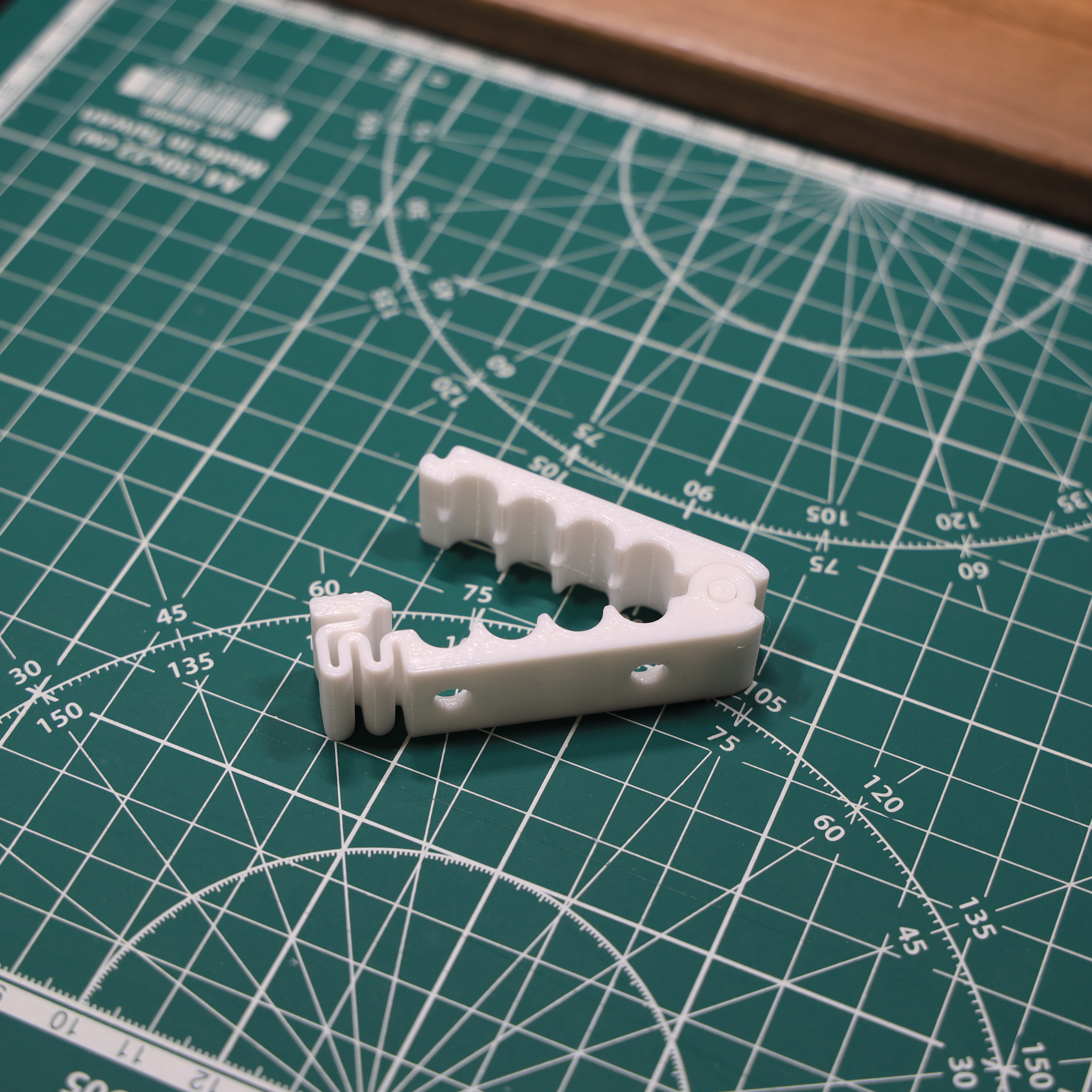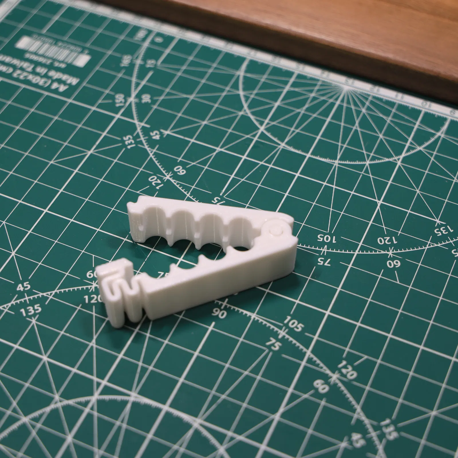 Các lỗ cho vít gỗ bắt âm được thêm vào mỗi 3 lỗ cáp. Cẩn thận đừng siết vít quá chặt, bạn có thể làm nứt các lớp in. Ngoài ra còn có một vết lõm nhỏ ở mặt sau nơi bạn có thể nhỏ một giọt keo để tăng cường độ chắc chắn.