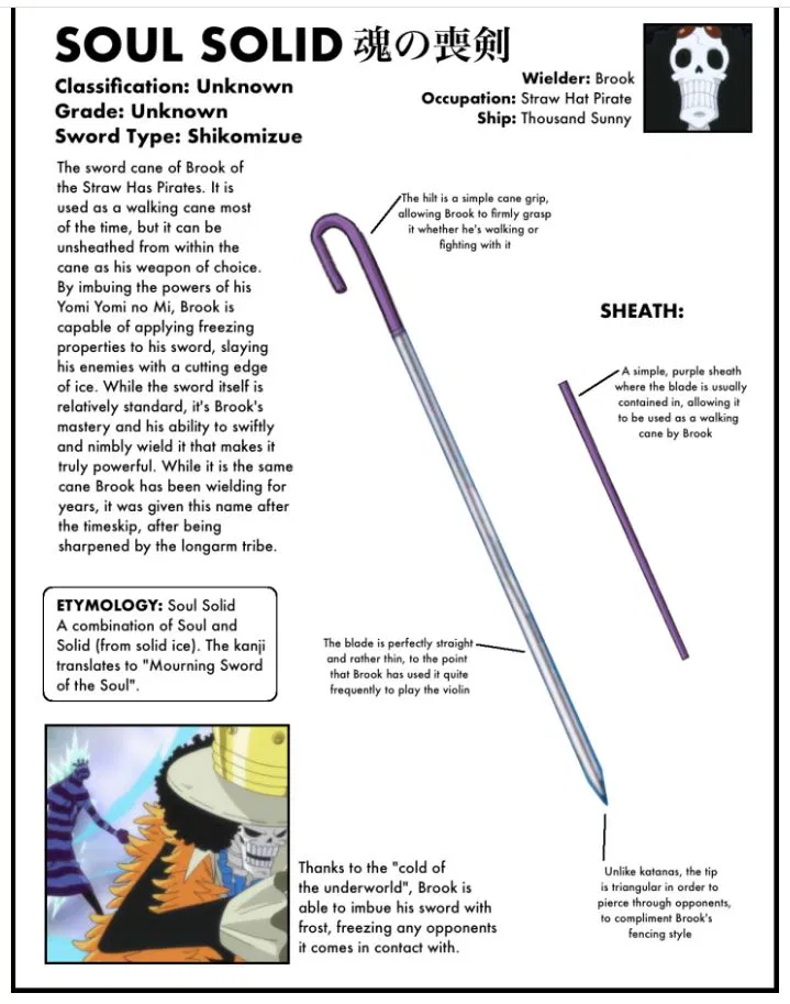 Tôi là fan của One Piece từ thời còn đi học đại học và tôi luôn thấy thanh kiếm gậy của Brooks ngầu.