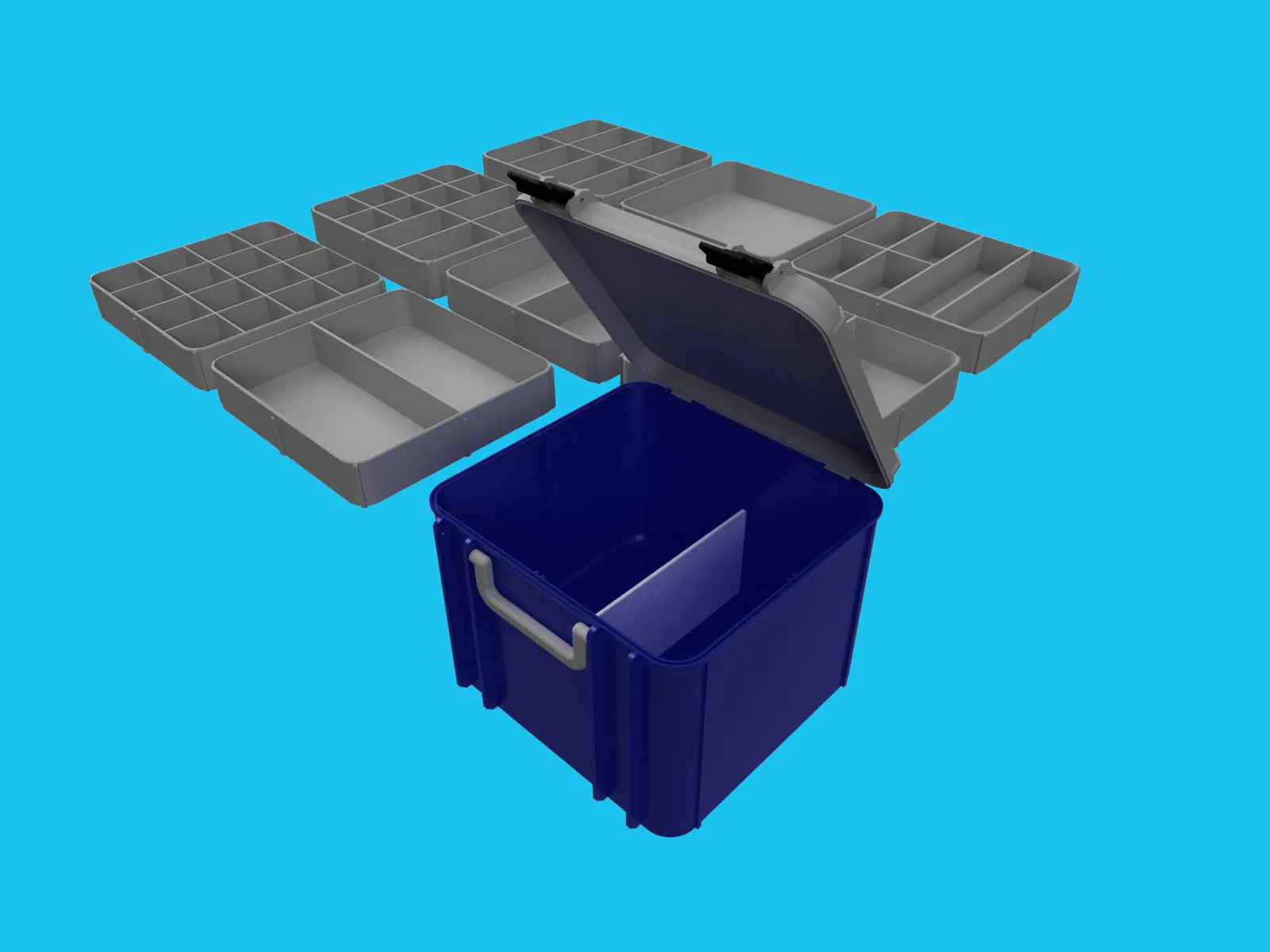 Hộp dụng cụ MEGA cho tối đa 4 khay với cách chia khác nhau hoặc chỉ với vách ngăn