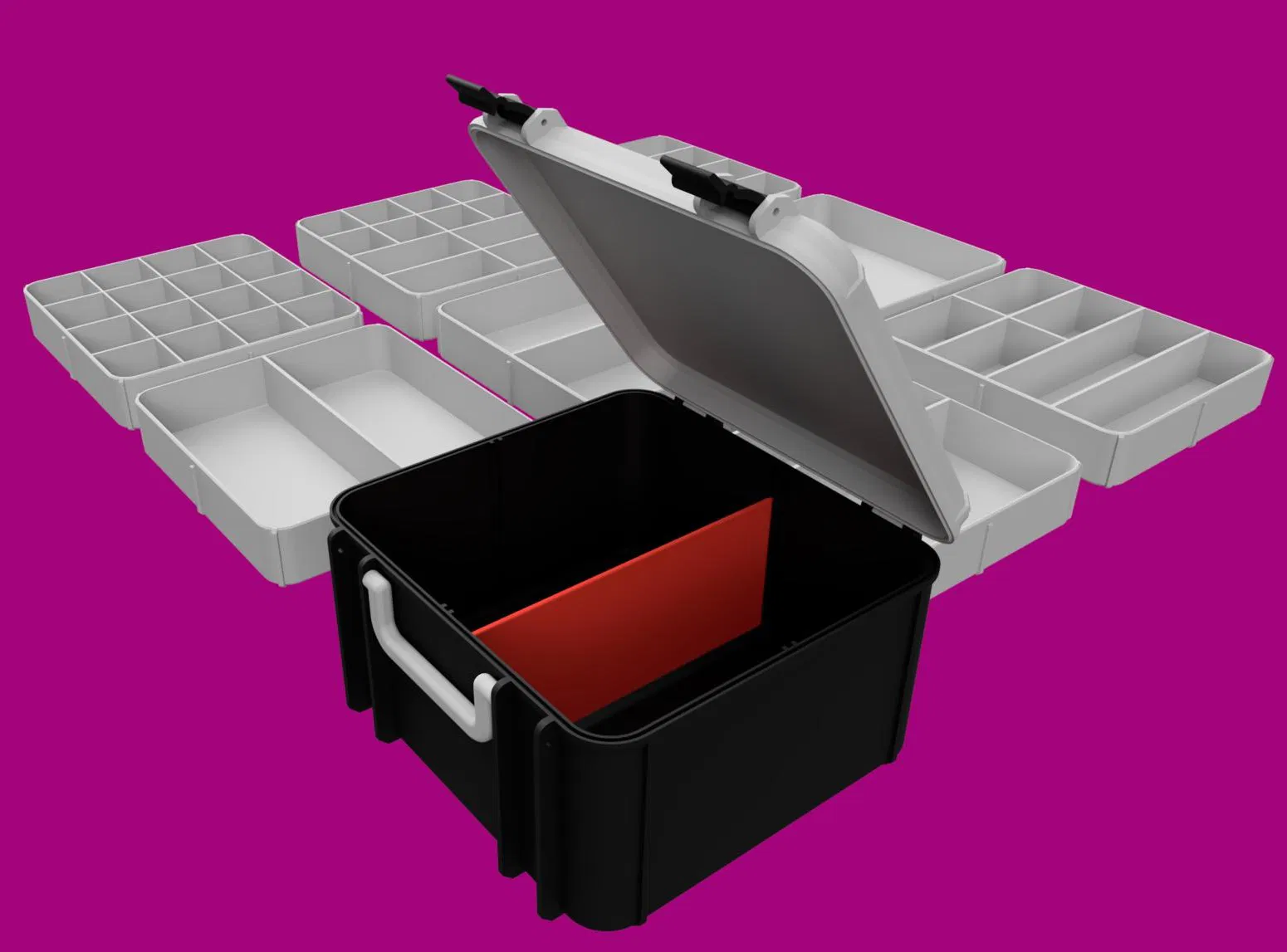 Hộp dụng cụ BIG cho tối đa 3 khay với cách chia khác nhau hoặc chỉ có vách ngăn.