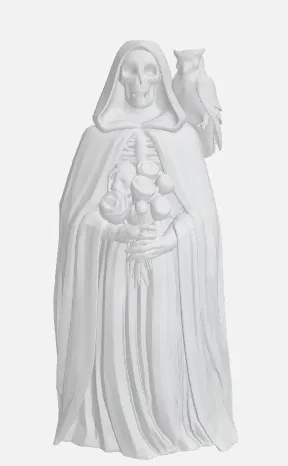 Một bức tượng tối giản về Thần Chết, người bảo vệ những kết thúc, tay cầm hoa hồng và đi cùng một con cú. Tác phẩm này khắc họa Thần Chết dưới một hình dạng thanh tao, gợi lên sự tôn kính và suy ngẫm về sự phù du và trí tuệ.