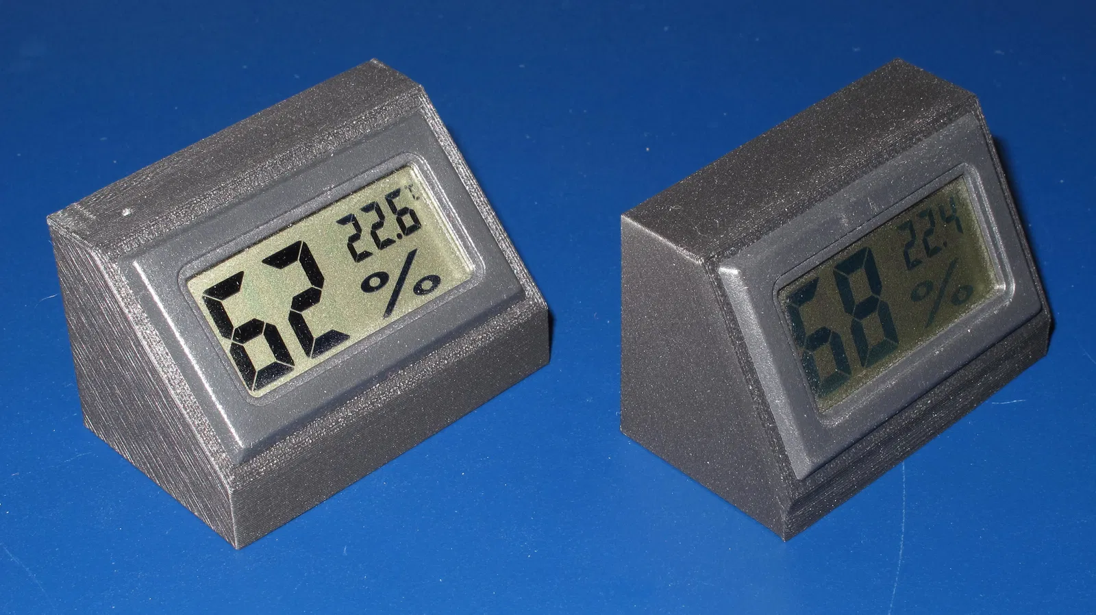 Một cái đế đứng đơn giản, free-standing, có thể in 3D để giữ module đo độ ẩm và nhiệt độ hình chữ nhật giá rẻ. Có hai phiên bản góc nghiêng 30° và 45° phía trước. Tường sau có lỗ để không khí lưu thông.
