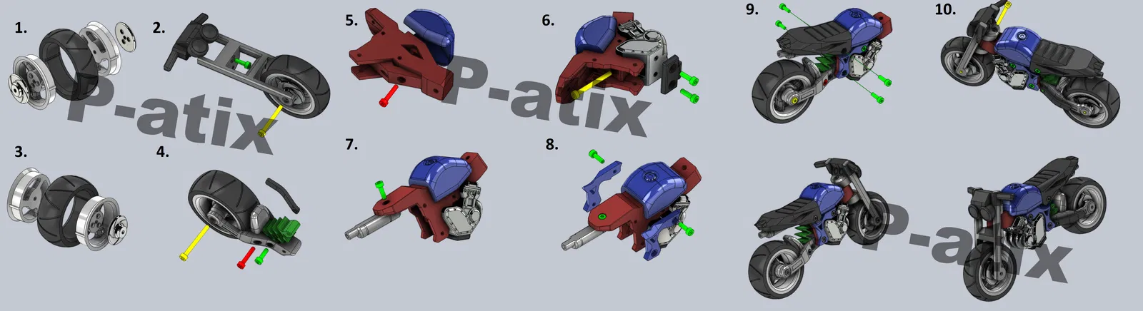 Mô hình xe mô tô Stunt "Nude" tỉ lệ 1:10 do mình tự tạo, gồm 21 bộ phận, tối ưu in không cần support. Cần ốc M3 để lắp ráp. Hướng dẫn chi tiết cách in và thông số máy in.