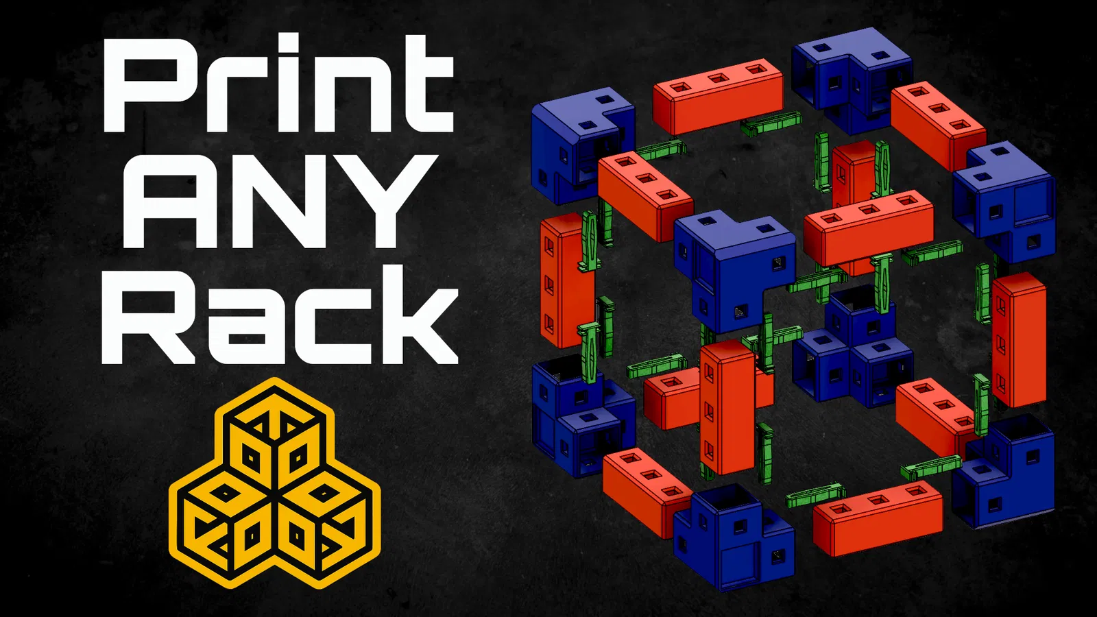 A fully modular universal rack building system for virtually any “racking needs” (Server Rack, bookshelf, shoe rack, you name it).