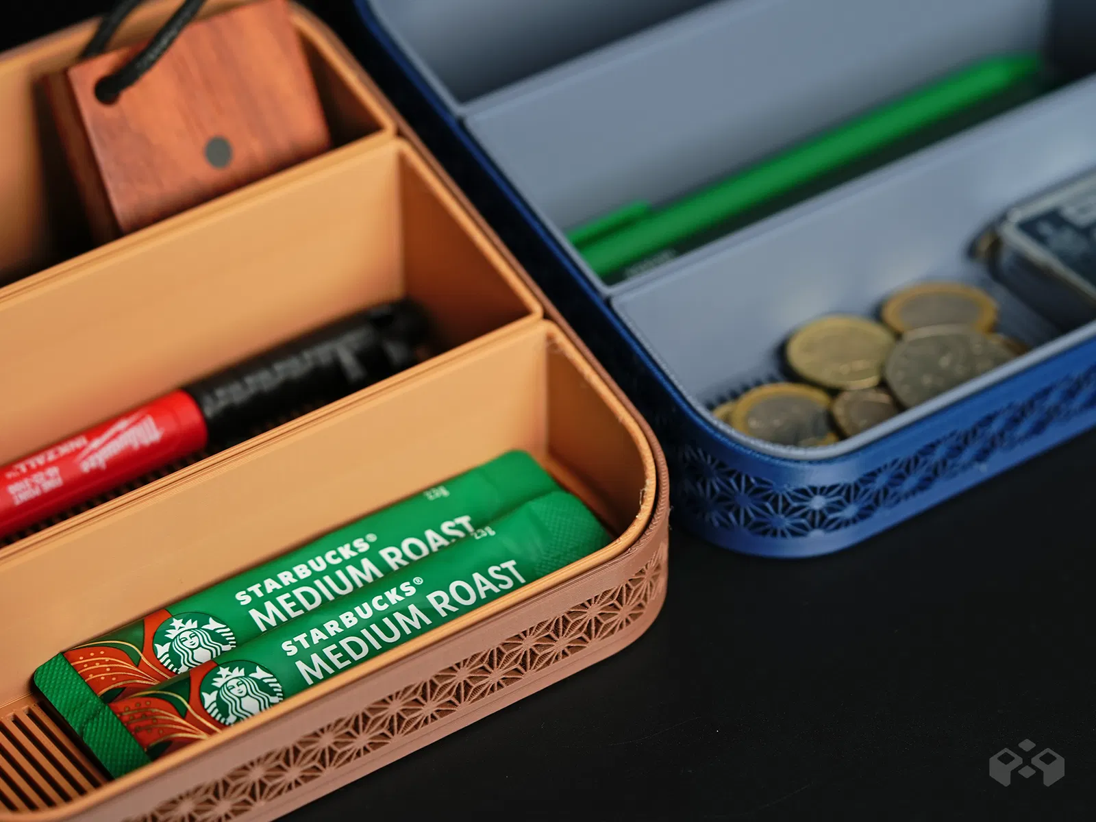 - Tổ Chức Tất Cả Trong Một – Vừa vặn với các vật dụng có kích thước và chiều cao khác nhau, như bút, kẹp giấy, tiền xu, thẻ, hoặc dụng cụ nhỏ, giúp mọi thứ luôn ngăn nắp.