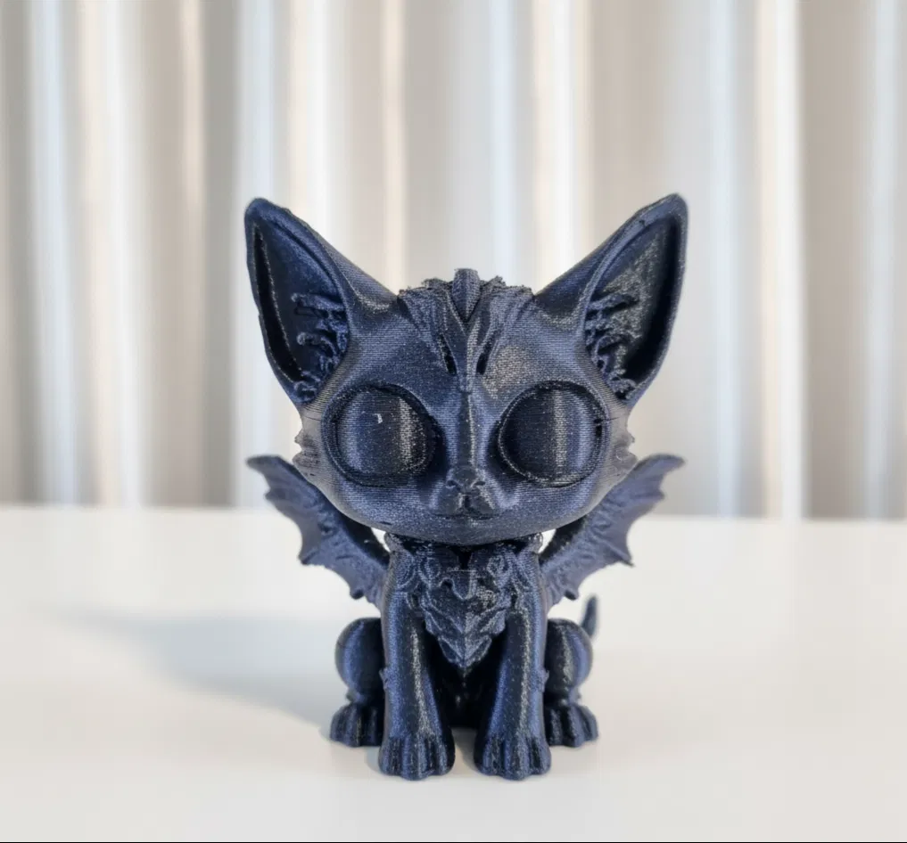Con mèo in 3D vừa dễ thương vừa ma quái này là món đồ trang trí Halloween hoàn hảo! Được thiết kế theo phong cách giả tưởng, con mèo có đôi cánh giống dơi, đôi mắt to trống rỗng và các họa tiết phức tạp như vảy, tạo cho nó vẻ ngoài huyền bí của một con rồng-mèo. In bằng sợi filament tối màu lấp lánh, nó nắm bắt được nét quyến rũ rùng rợn của Halloween, đồng thời thêm một chút kỳ ảo cho không gian trưng bày của bạn. Hoàn hảo cho kệ sách, bàn làm việc hoặc các bối cảnh ma quái!