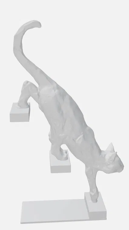 Tượng Mèo Thanh Thoát với phong cách đồng tối giản, thể hiện chuyển động uyển chuyển và duyên dáng của chú mèo đang bước đi. Mẫu này cần nhiều hỗ trợ khi in.
